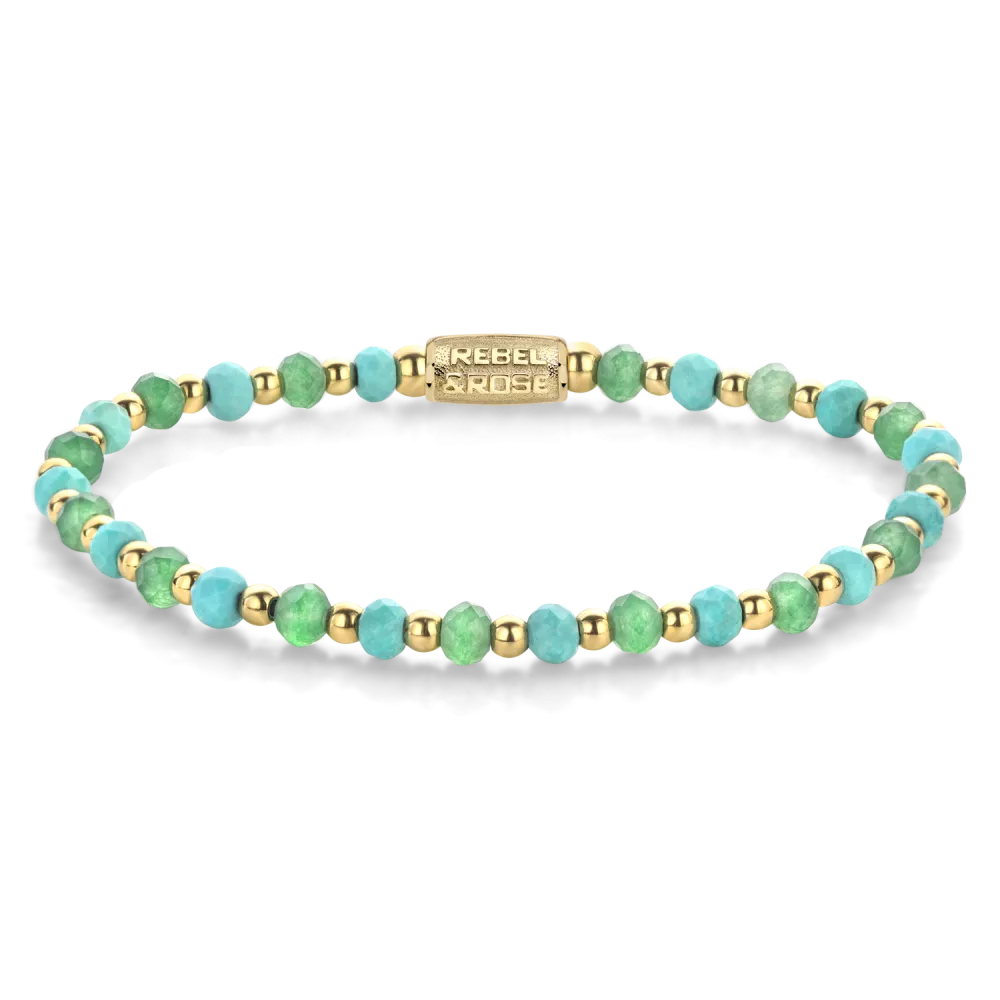 • REBEL & ROSE REBEL & ROSE Armband | Blue Green Adventure | Goudkleurig ion-plated | 4 mm | RR-40143-G