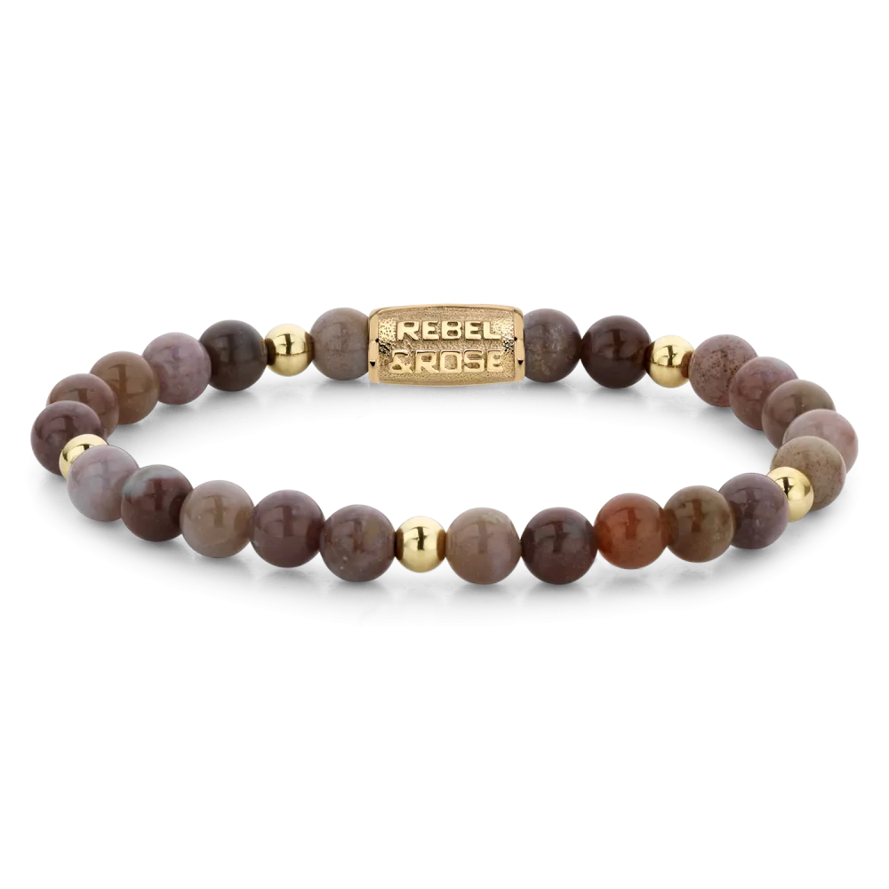 REBEL & ROSE Armband | Edelstenen kralenarmband, handgemaakt van 6mm Agaat stenen met een goldplated edelstalen sluiting.