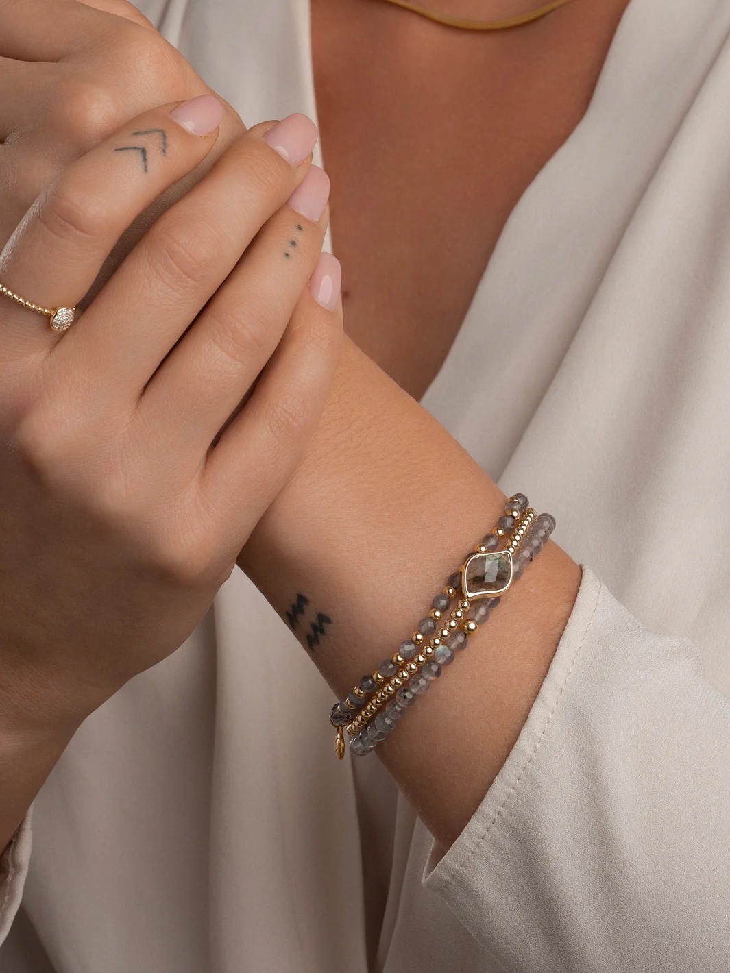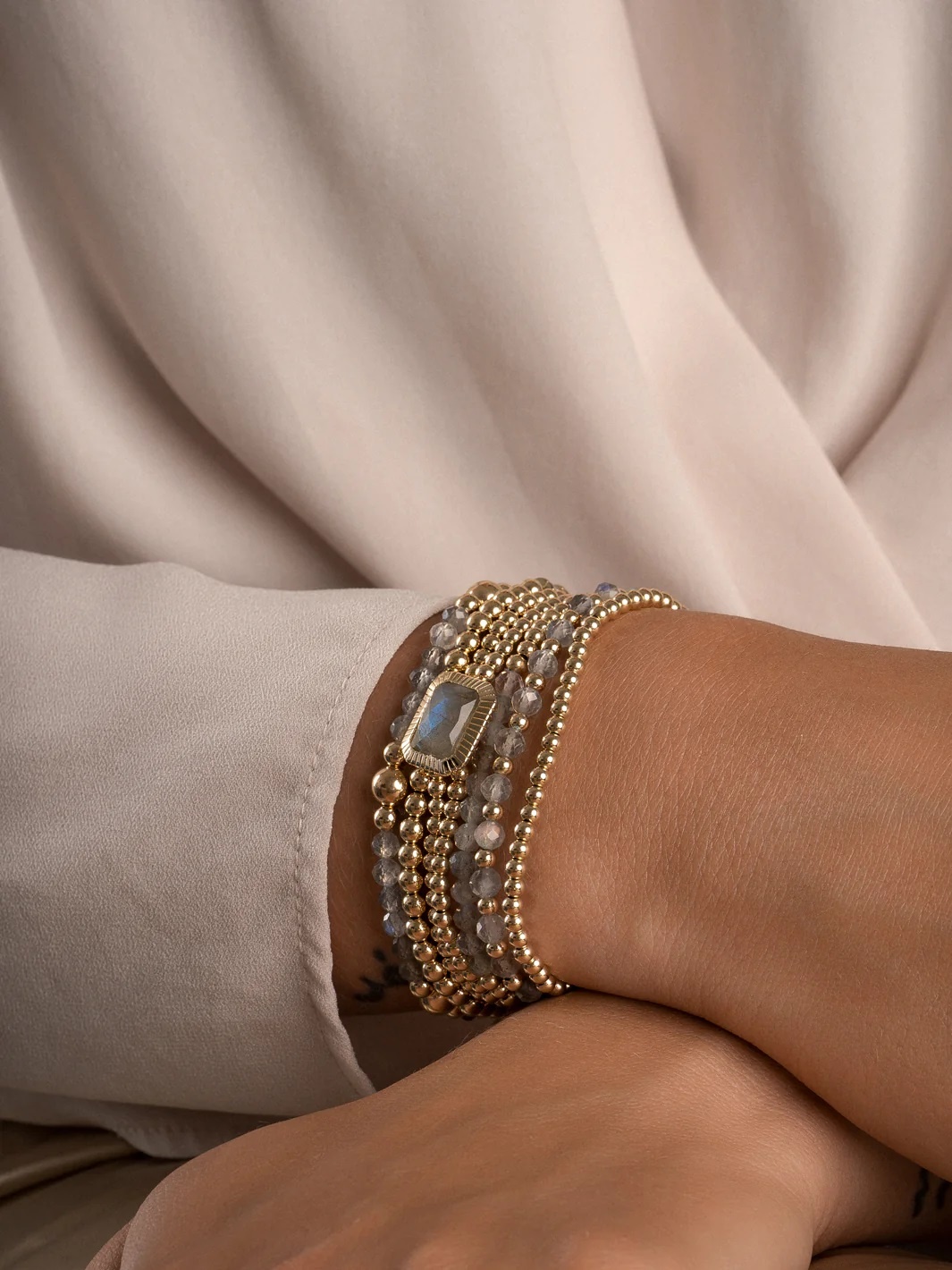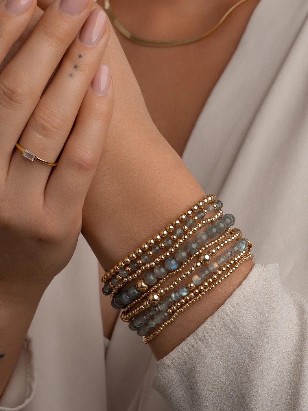 De Interstellar Labradorite armbanden zijn perfect voor alledaags dragen. Geïnspireerd op de stand van de sterren en planeten in de cosmos, deze collectie viert onze fascinatie met het heelal. Draag de armband alleen óf stack deze met andere Sparkling Jewel armbanden voor een statement look.