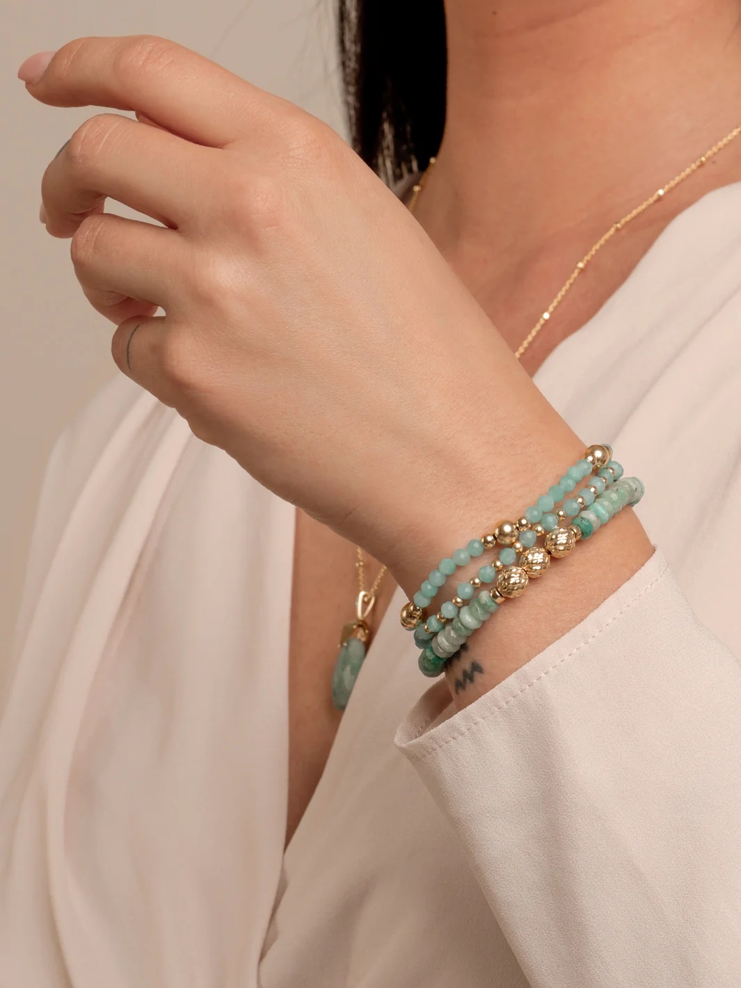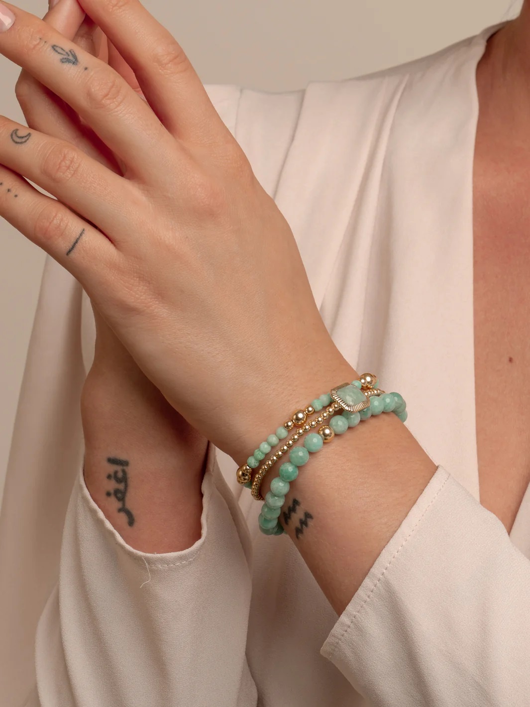 De Sparkling Jewels Rich Green Amazonite Bold Mix Armband is een stijlvolle toevoeging aan elke sieradencollectie. De unieke 4mm cilindervormige, gefacetteerde edelsteenkralen van Rich Green Amazonite geven een opvallende en verfijnde uitstraling. Deze armband is niet alleen een prachtig solo-statement, maar kan ook moeiteloos worden gecombineerd met andere sieraden om een persoonlijke stijl te creëren. Met zijn veelzijdigheid en elegante design is het een perfecte keuze voor zowel dagelijkse als speciale gelegenheden.