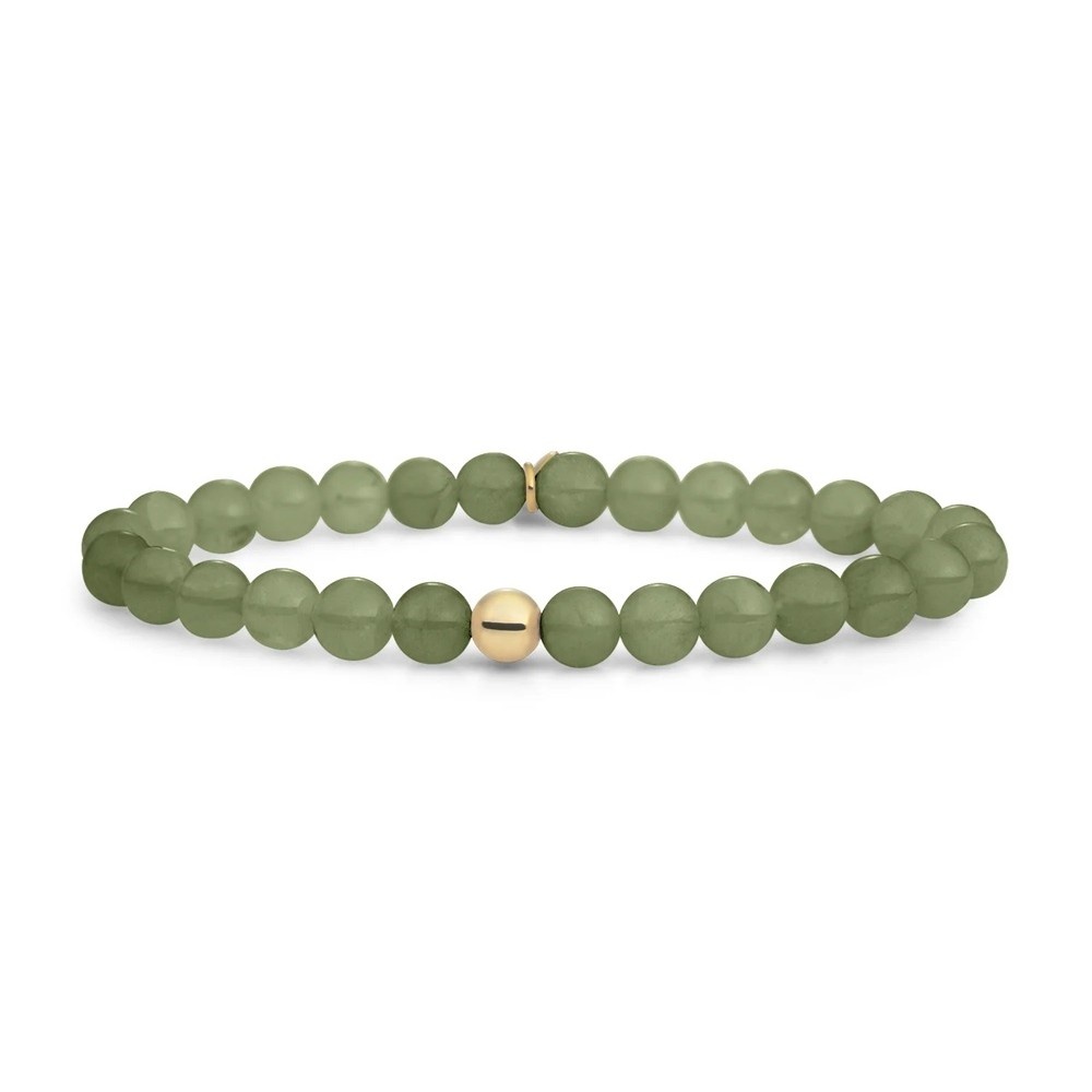 Een frisse armband met Lime Jade edelstenen (6 mm) en een verguld zilveren kraal. De heldergroene tint straalt energie en creativiteit uit. Draag solo of mix & match voor een speelse, stijlvolle look. Edelsteen: Lime Jade| Elastische armband 17,5 - 18cm.