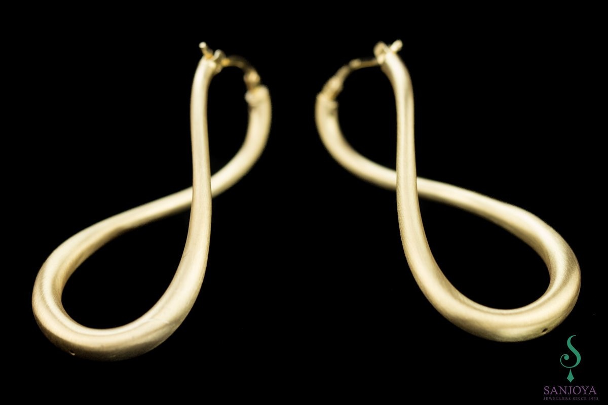 SANJOYA Oorbellen | CREOLEN | INFINITY | MATTE | VERGULD zijn verfijnde matte creolen van sterling zilver verguld in de vorm van een open en langwerpige krul, infinity genoemd.