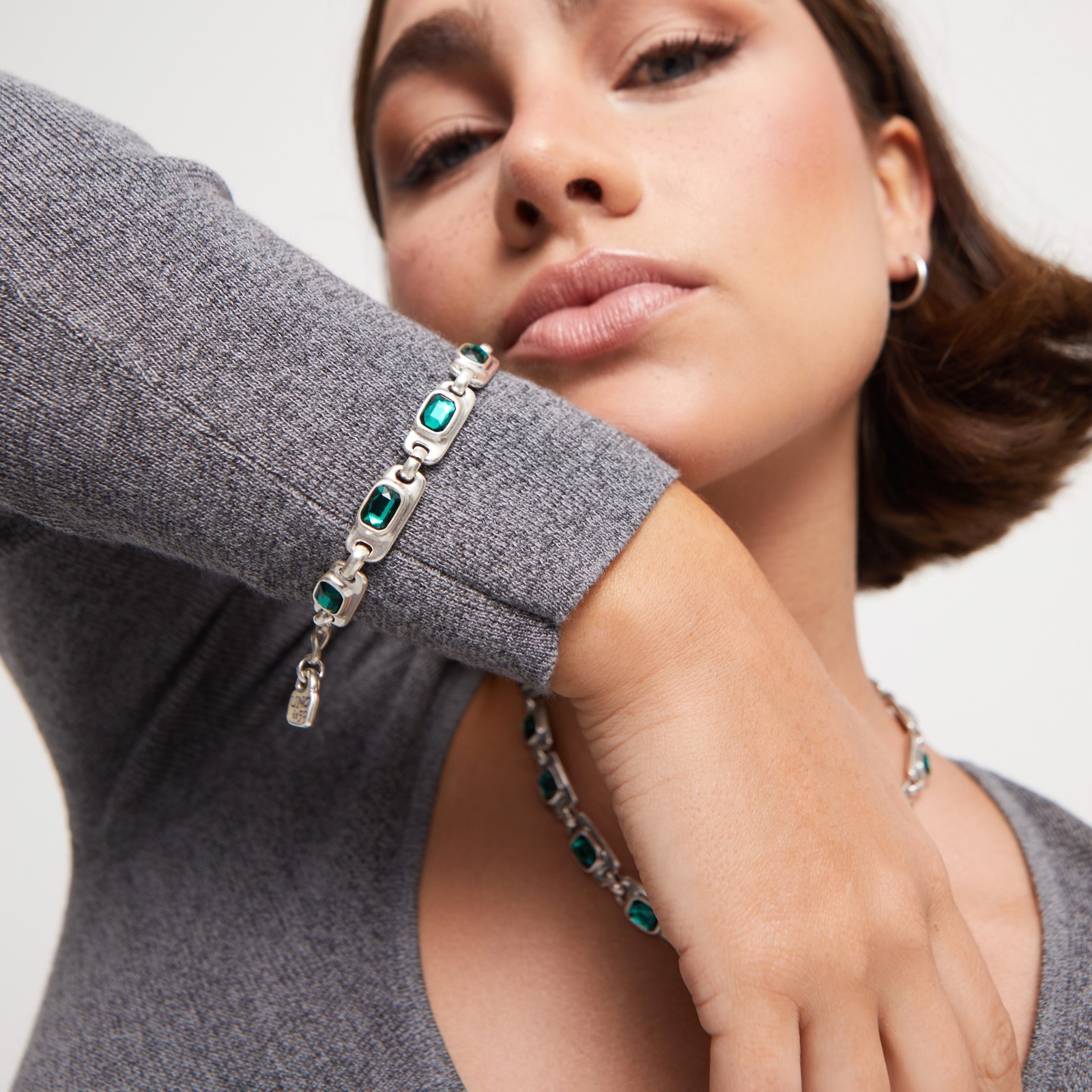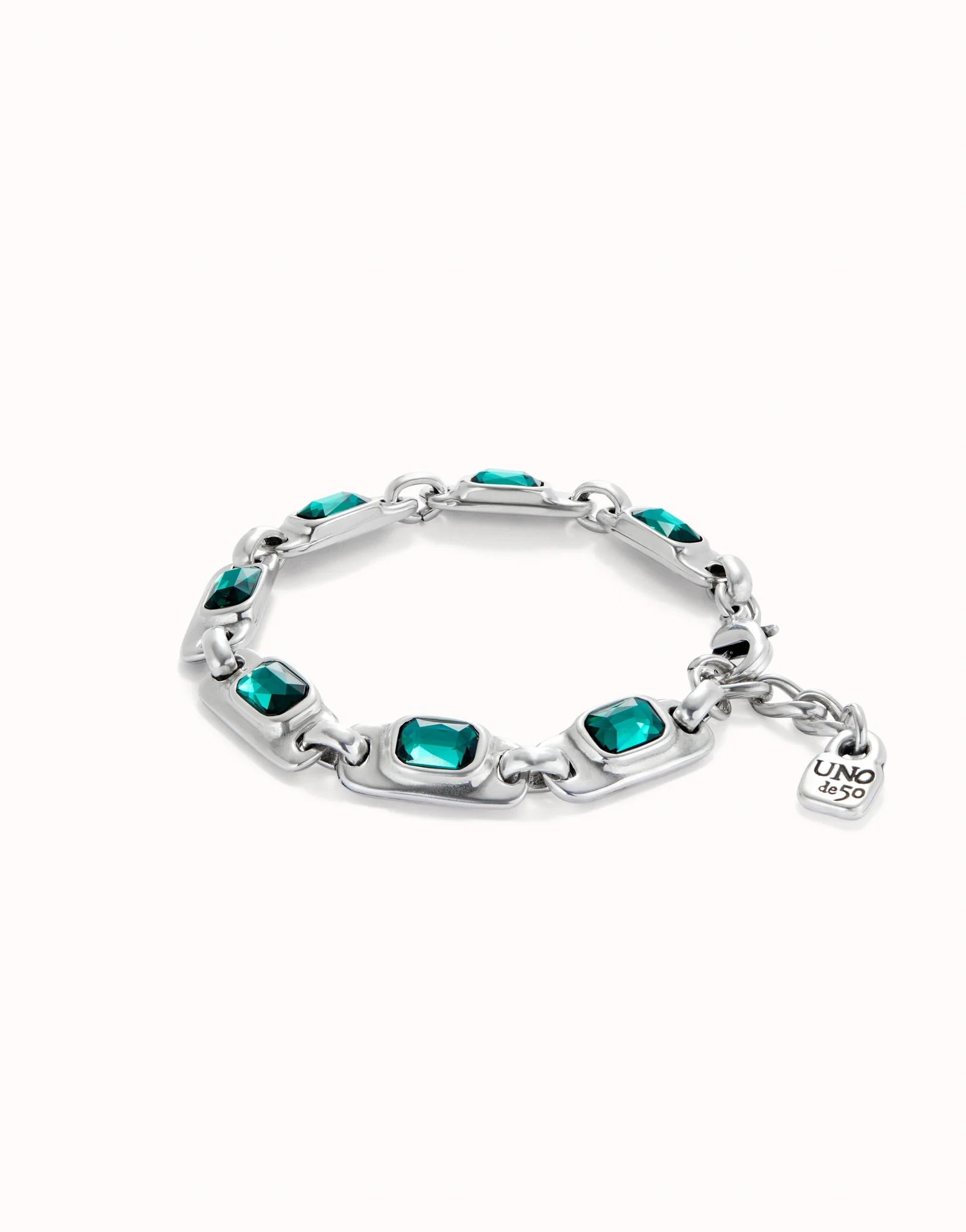 UNOde50 Armband | SER MAGNETICA is een mooie sterling verzilverde armband met meerdere gefacetteerde groene kristallen. Ware eyecatcher voor de feestdagen.