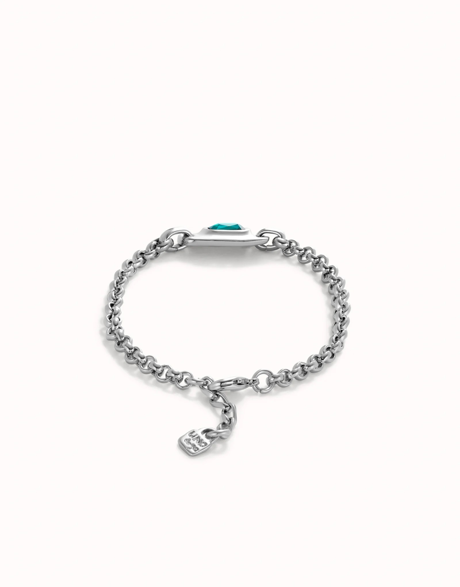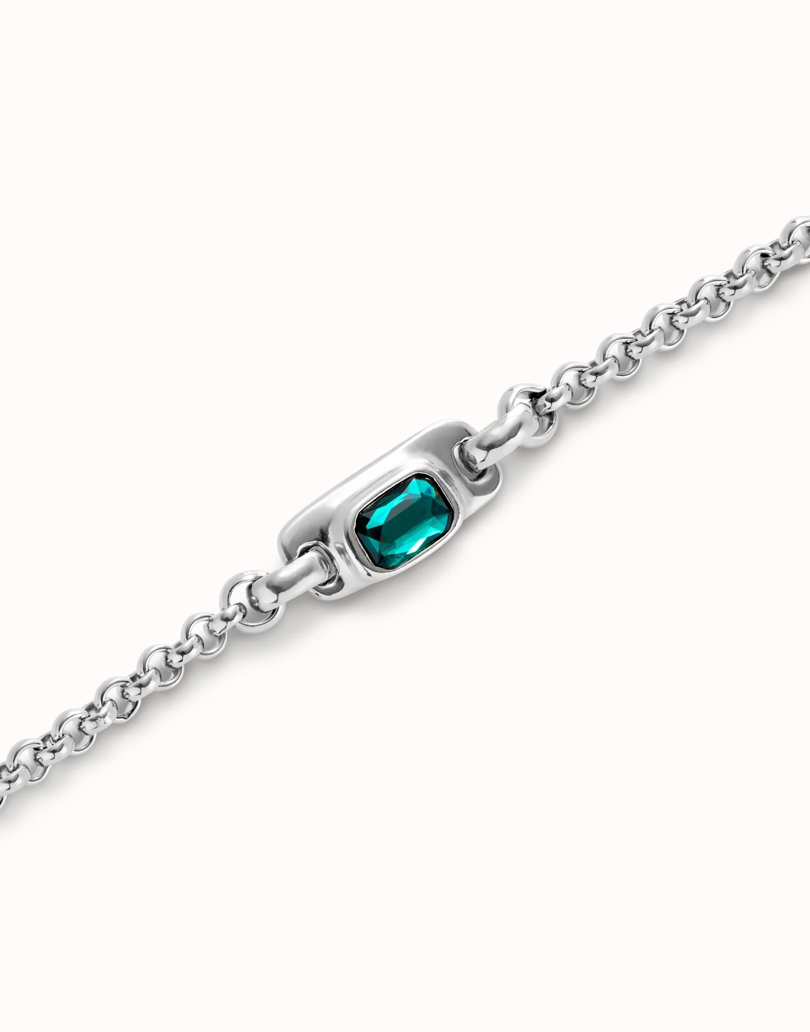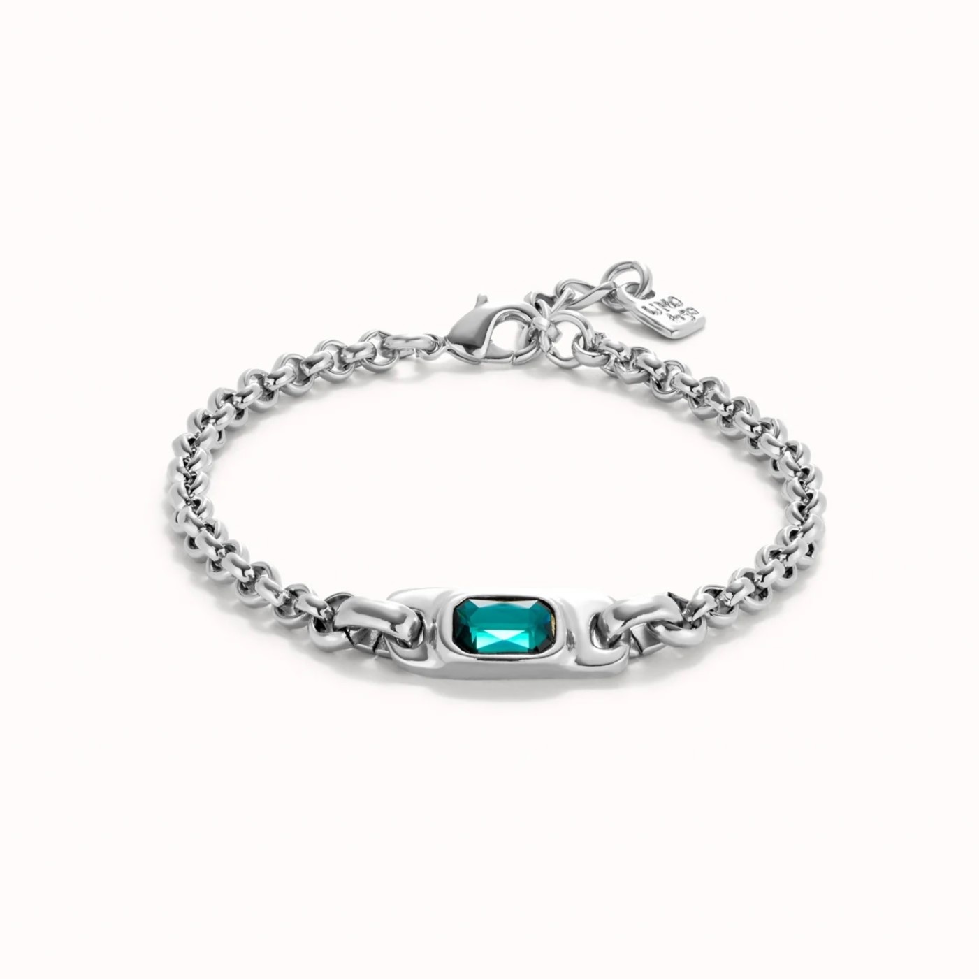 UNOde50 Armband | SER MAGNETICA is een mooie sterling verzilverde schakelarmband met een centrale gefacetteerde groene kristal. Ware eyecatcher voor de feestdagen.