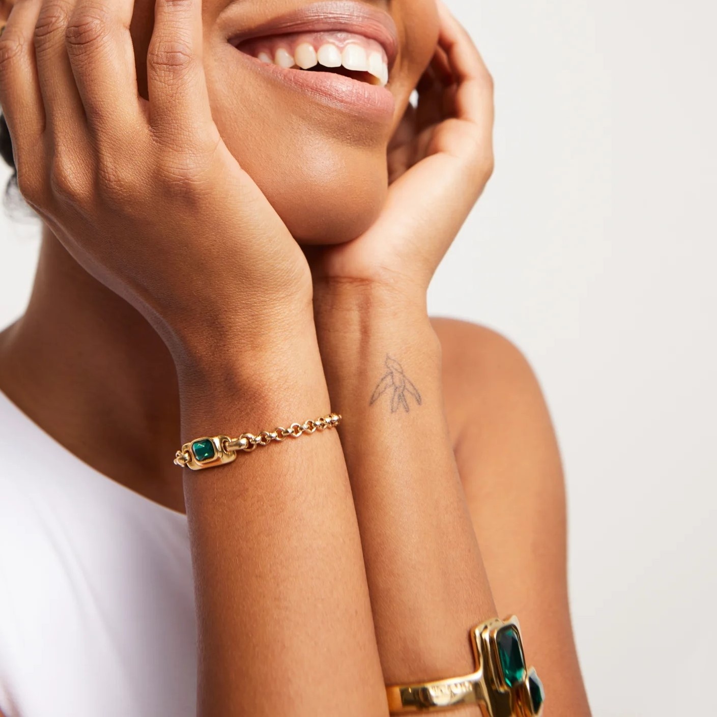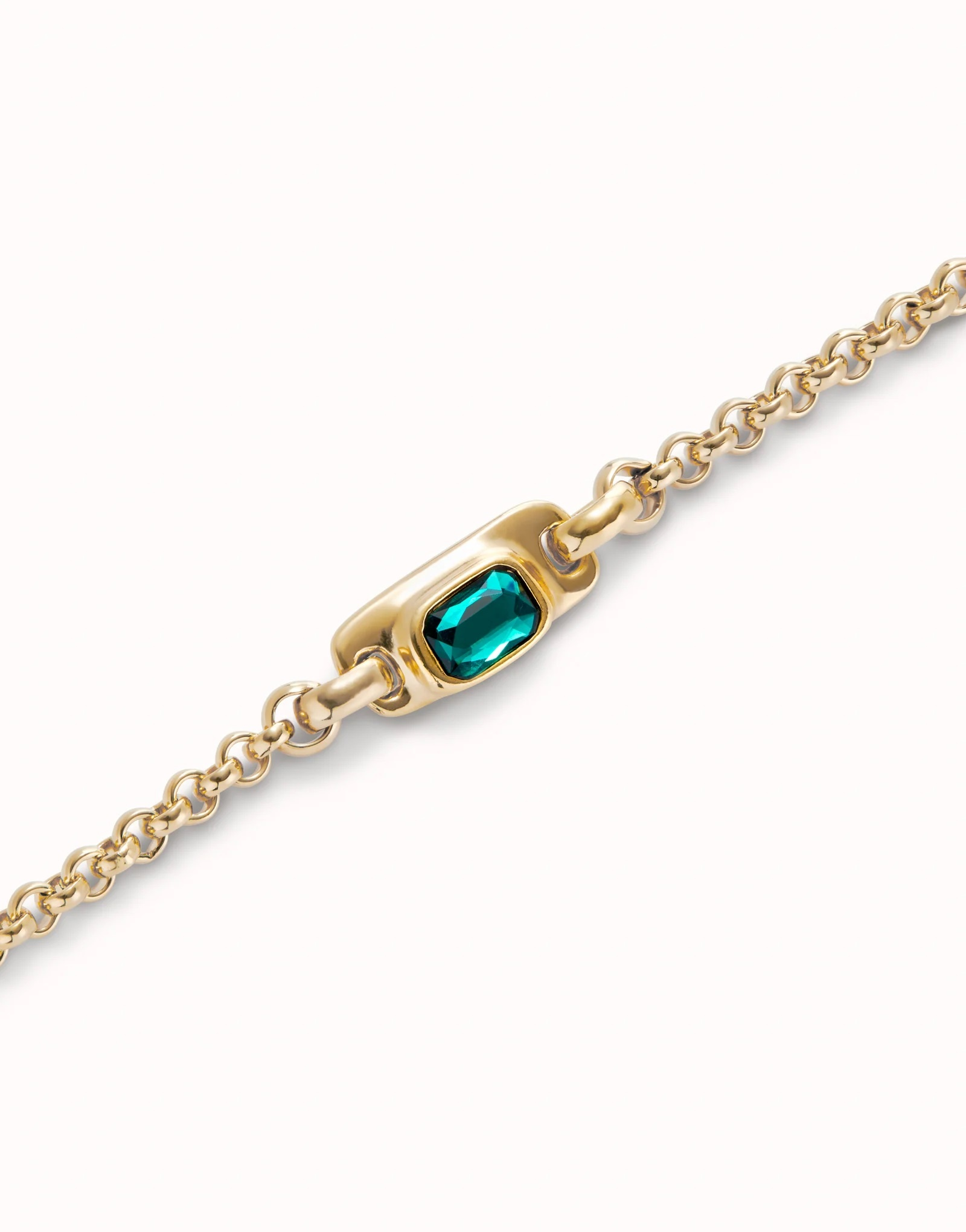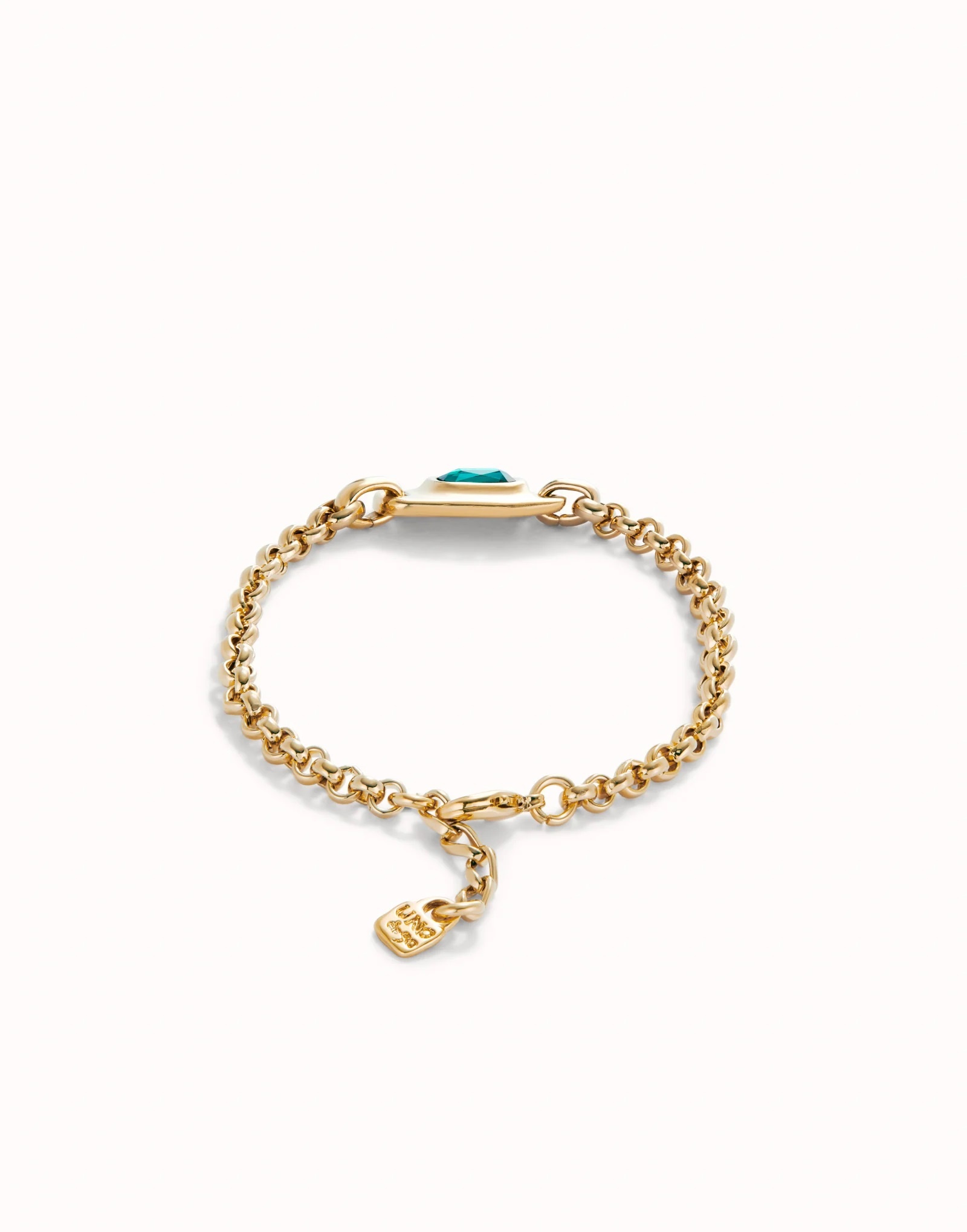 UNOde50 Armband | SER MAGNETICA is een mooie vergulde schakel armband met centrale gefacetteerde groene kristal. Ware eyecatcher voor de feestdagen.