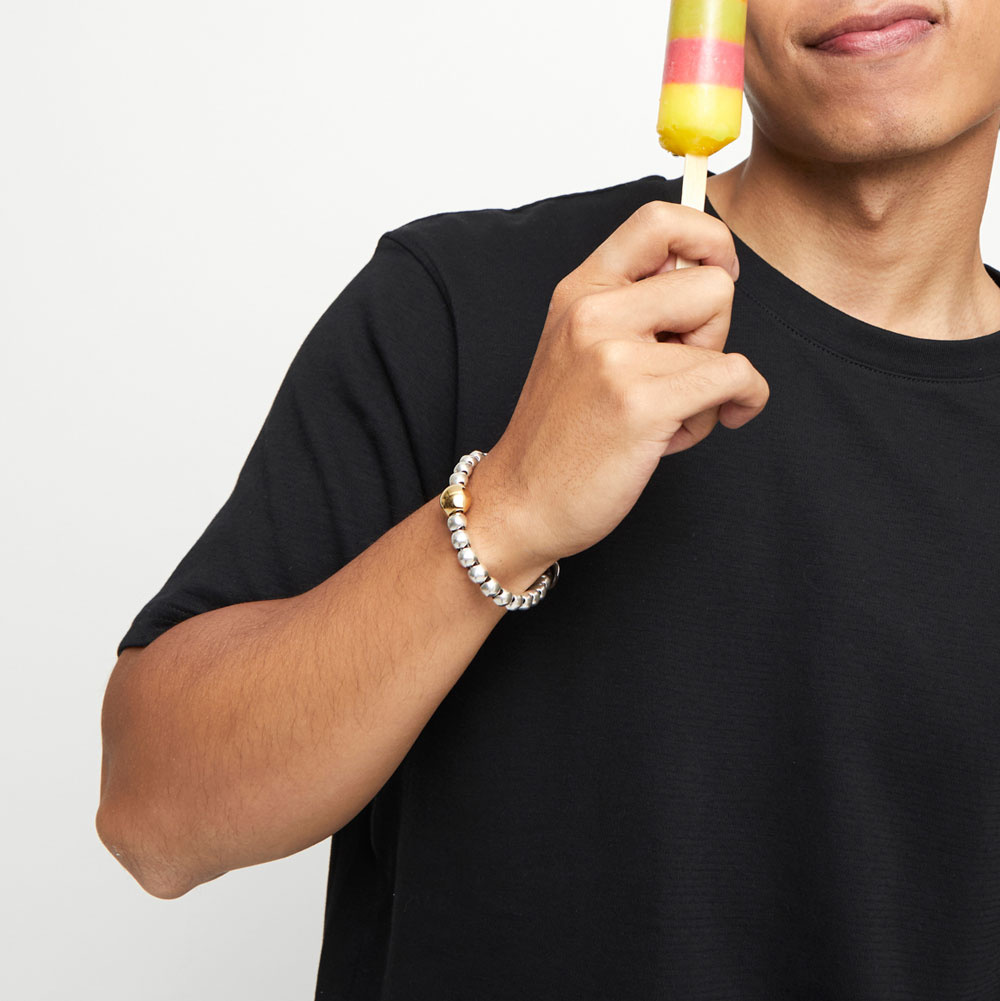 UNOde50 Armband | SER INTREPIDA is een mooie armband met sterling verzilverde kralen en centrale grotere vergulde kraal.