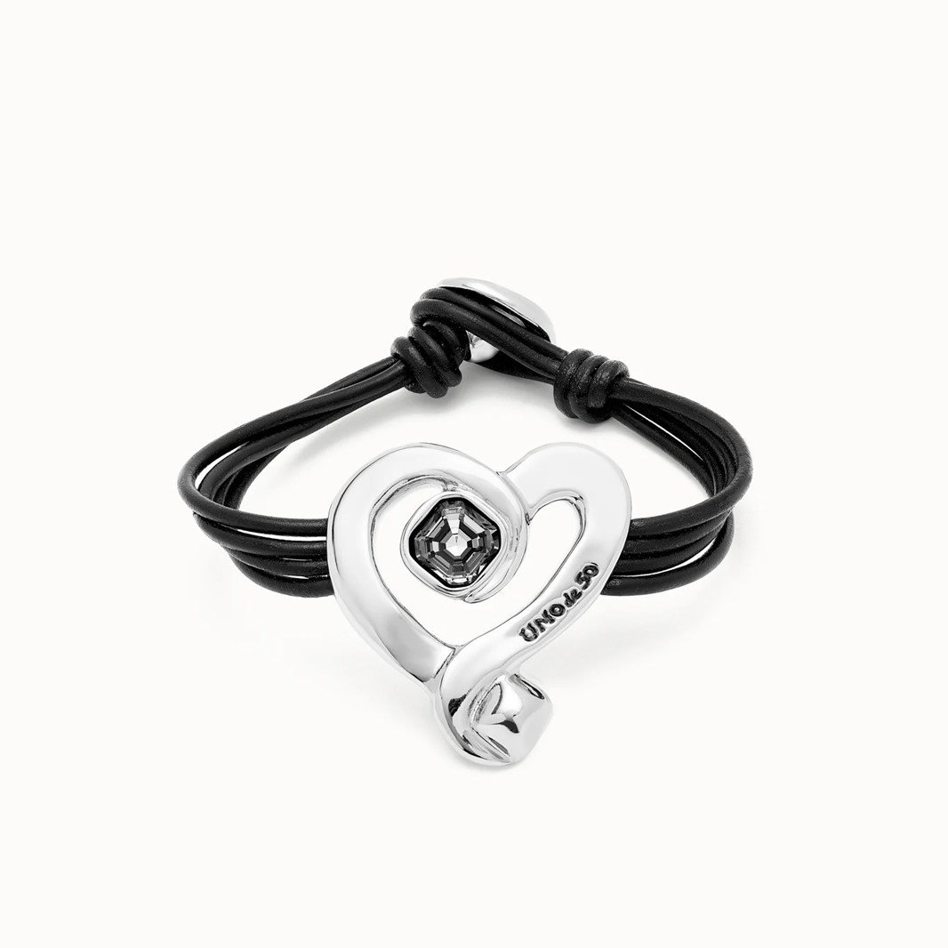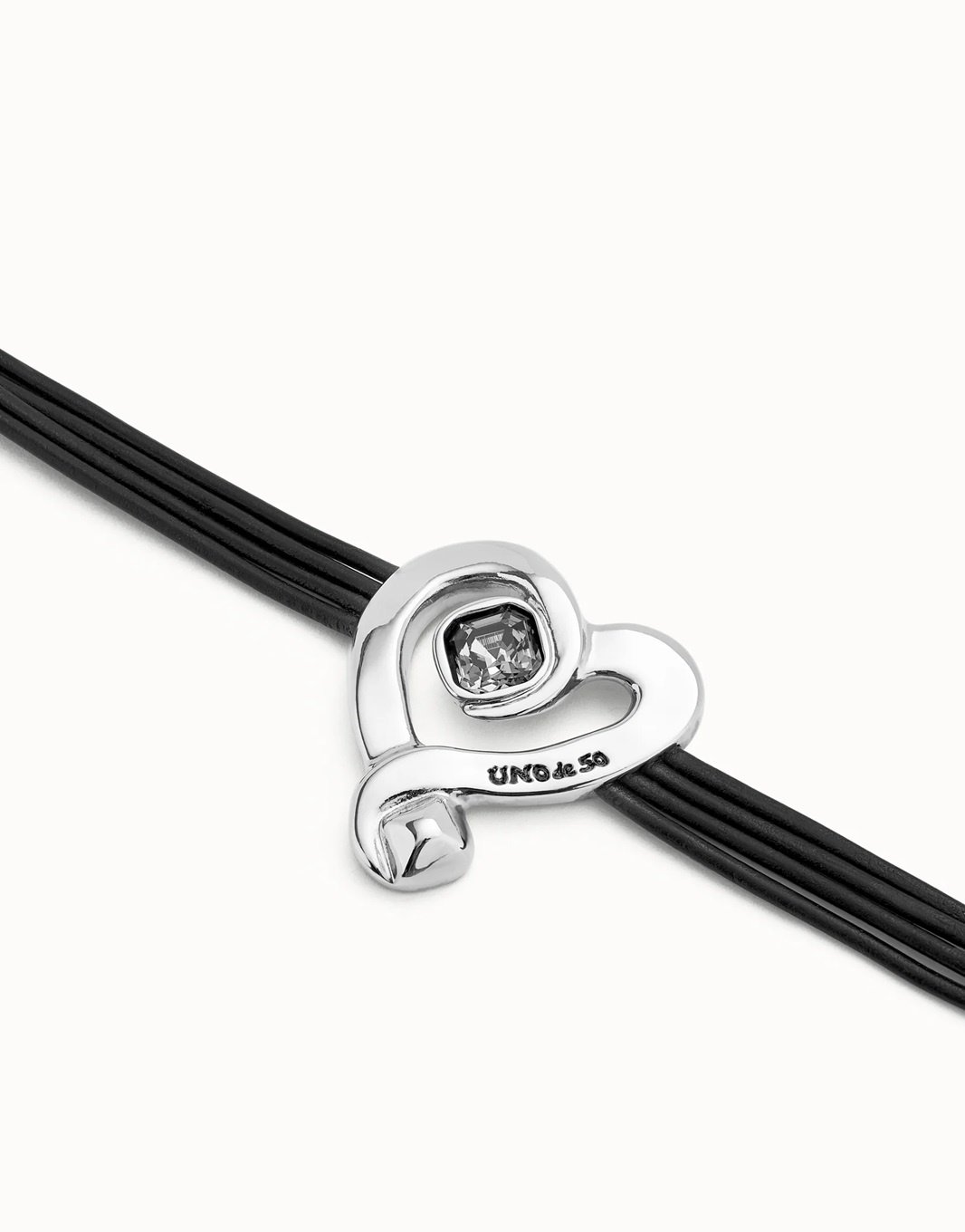 UNOde50 Armband | SER EXPRESIVA is een stoere bruin leren armband met sterling verzilverd hart en transparant kristal.