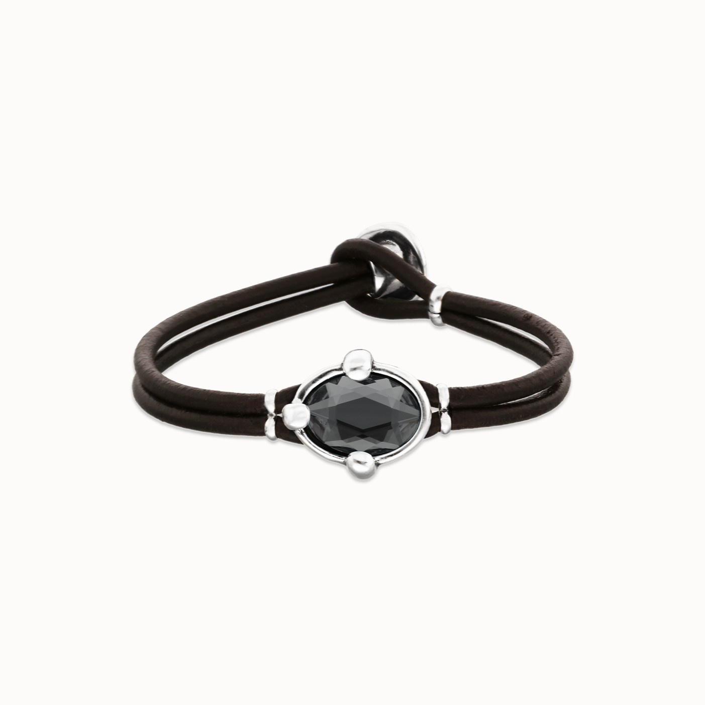 Ontdek de perfecte balans tussen natuurlijk en elegant met armband PUL2594NGRMTL uit de Ser Deslumbrante-collectie van UNOde50. Deze unieke armband bestaat uit een dubbele bruine leren band die de robuuste, aardse kant benadrukt, gecombineerd met een centraal element waarin een gefacetteerd jet‑zwart kristal schittert. Het warme leer en het glanzende metaal creëren samen een opvallend contrast dat de subtiele elegantie van het kristal versterkt.