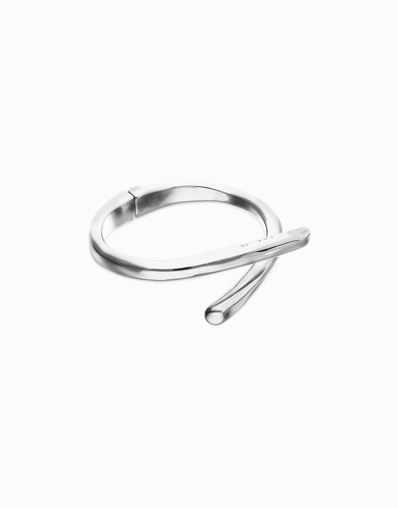 De bangle is uitgevoerd in zwaar verzilverd metaal (15 micron) en heeft een comfortabele, licht ovale pasvorm. Hierdoor sluit hij mooi om de pols en draagt hij prettig, zowel solo als gecombineerd met andere armbanden uit de collectie.