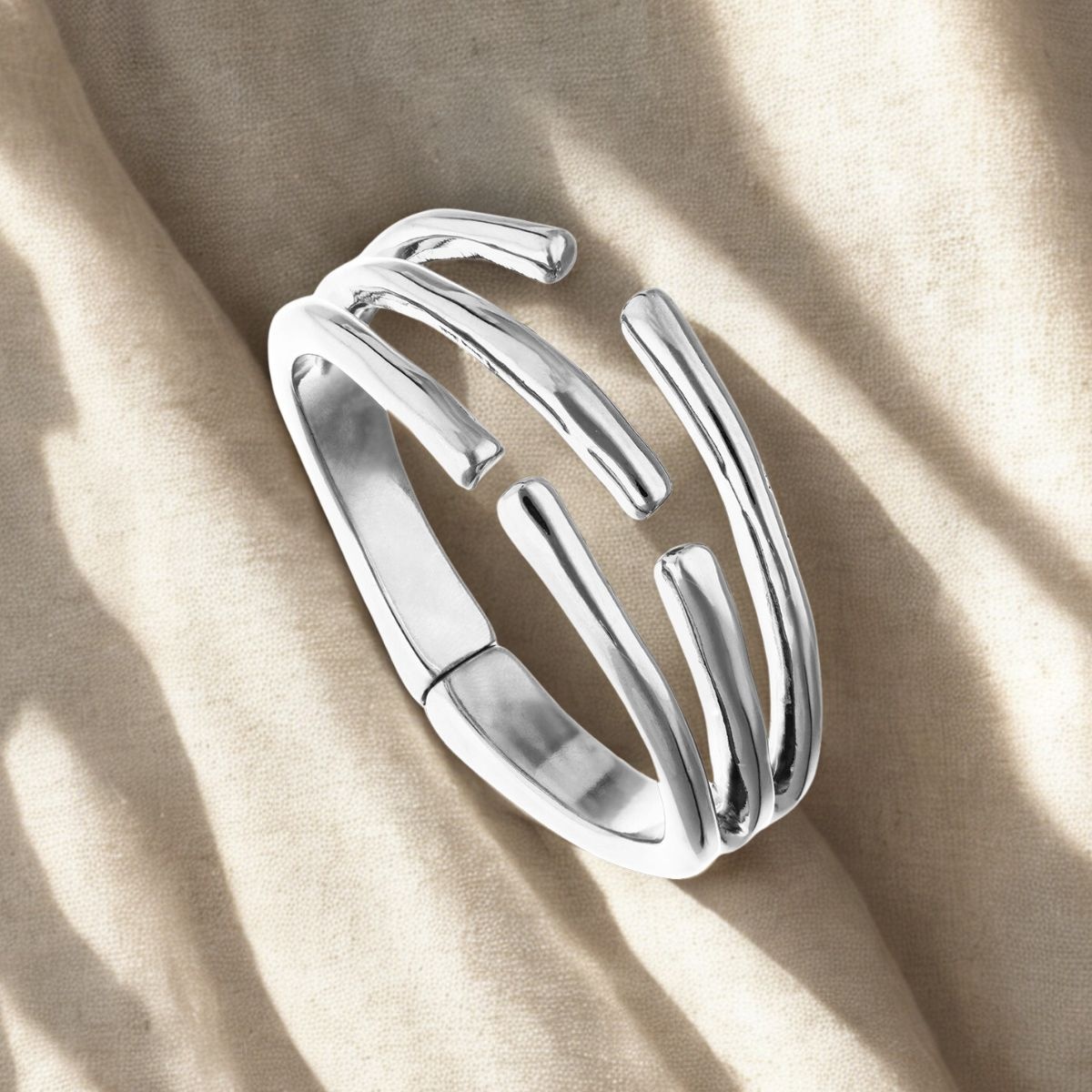 De verzilverde bangle PUL2633MTL van UNOde50 is een echte eyecatcher binnen de ROOTS‑collectie. Het ontwerp bestaat uit meerdere prachtig verweven organische vormen, die samen een krachtige, sculpturale uitstraling creëren. De vloeiende lijnen en het handgemaakte karakter geven deze armband een moderne, artistieke look die direct opvalt.