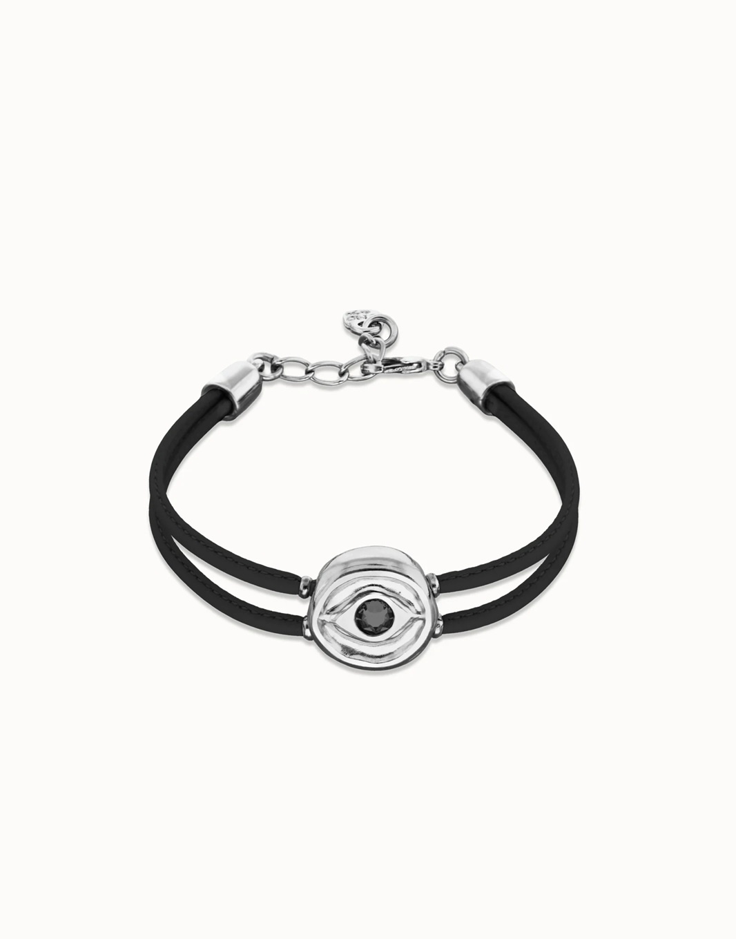 Dubbele zwarte leren armband met gouden oog. Er zijn mensen die visionair zijn, wier intuïtie hun kompas is. Ser Intuitiva houdt rekening met die mystieke kant van ons, waardoor we ons verborgen zelf naar boven kunnen halen en aan de wereld kunnen laten zien.
