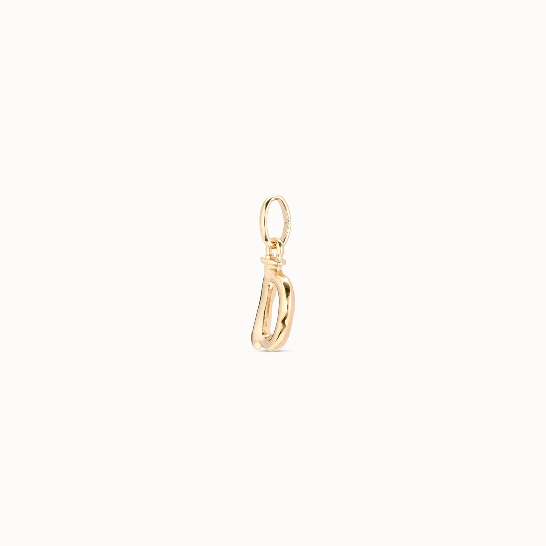 UNO de 50 Bedeltje | Letter D | Small is een vergulde hanger geïnspireerd op de iconische spijker van UNOde50 in de vorm van de letter D. Je kunt deze bedel (ca 2,5 cm) dragen aan een ketting of armband. Leuk cadeautje!