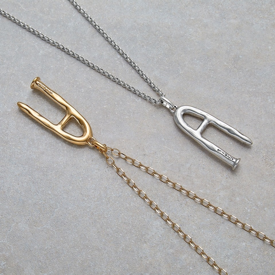UNO de 50 Bedeltje | Letter M | Big is een verzilverde hanger geïnspireerd op de iconische spijker van UNOde50 in de vorm van de letter M. Je kunt deze bedel (ca 6,5 cm) dragen aan een ketting. Leuk cadeautje!