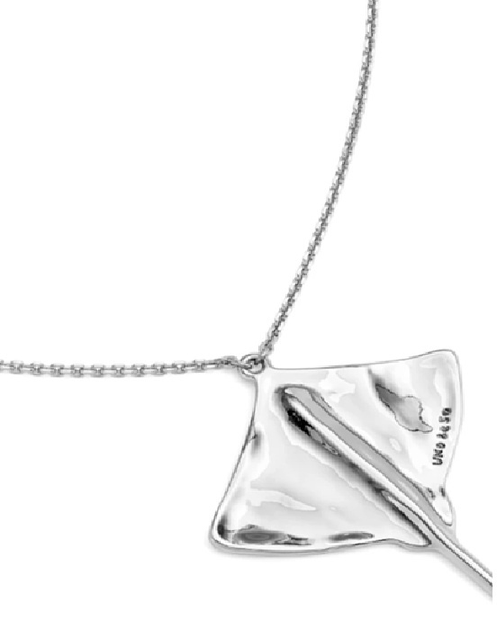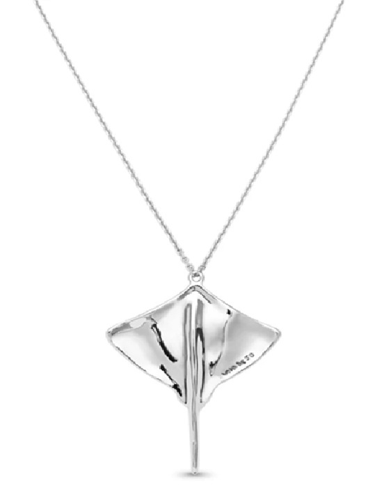 Lange verzilverde ketting met mantarog hanger. Ontdek de elegantie van de collectie Ser Majestuosa met haar sieraden die het fladderen van een mantarog door de onmetelijkheid van de zee oproepen.
