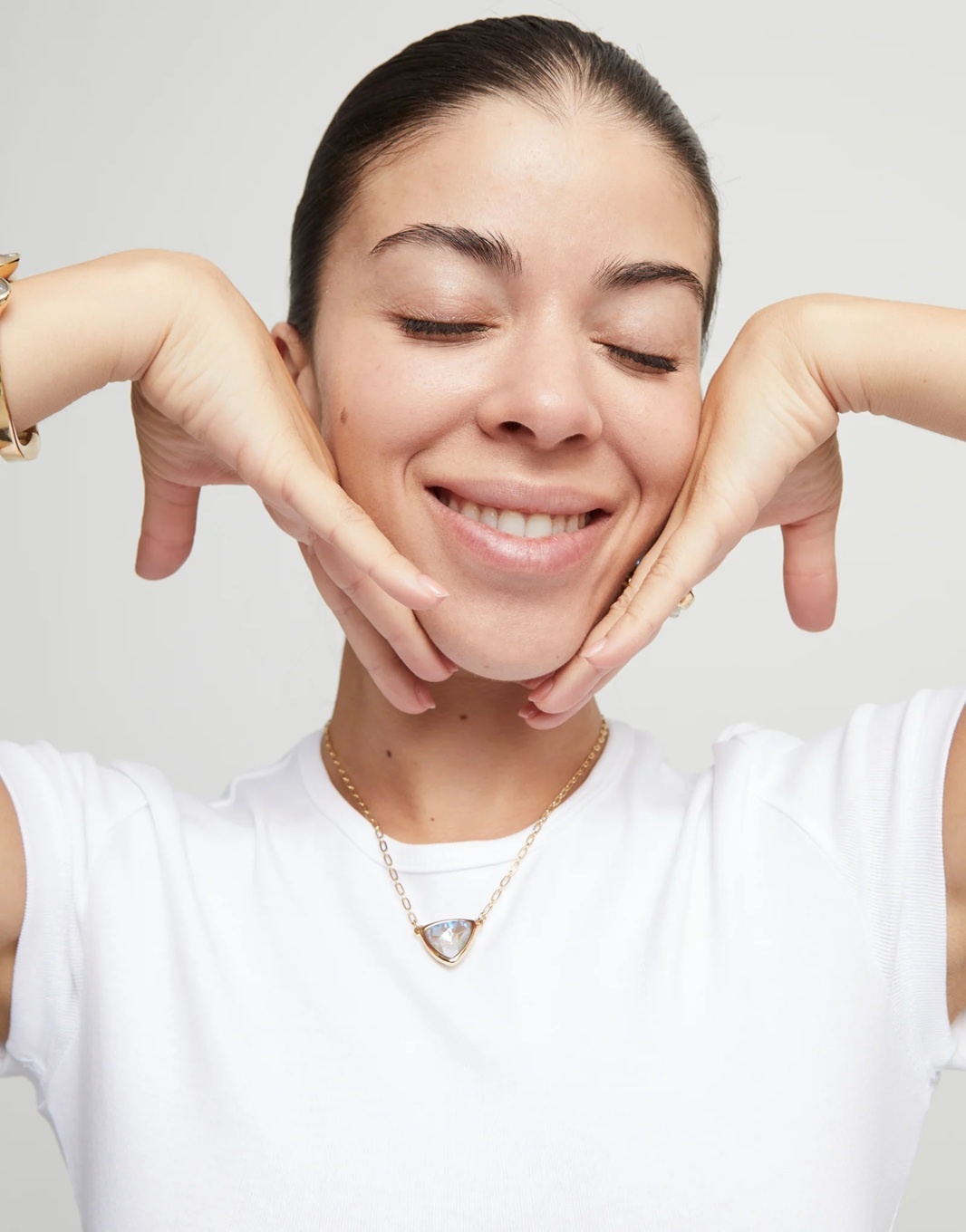 UNOde50 Ketting | SER CAMALEONICA is mooie vergulde ketting met driehoek en veelkleurig centraal kristal.