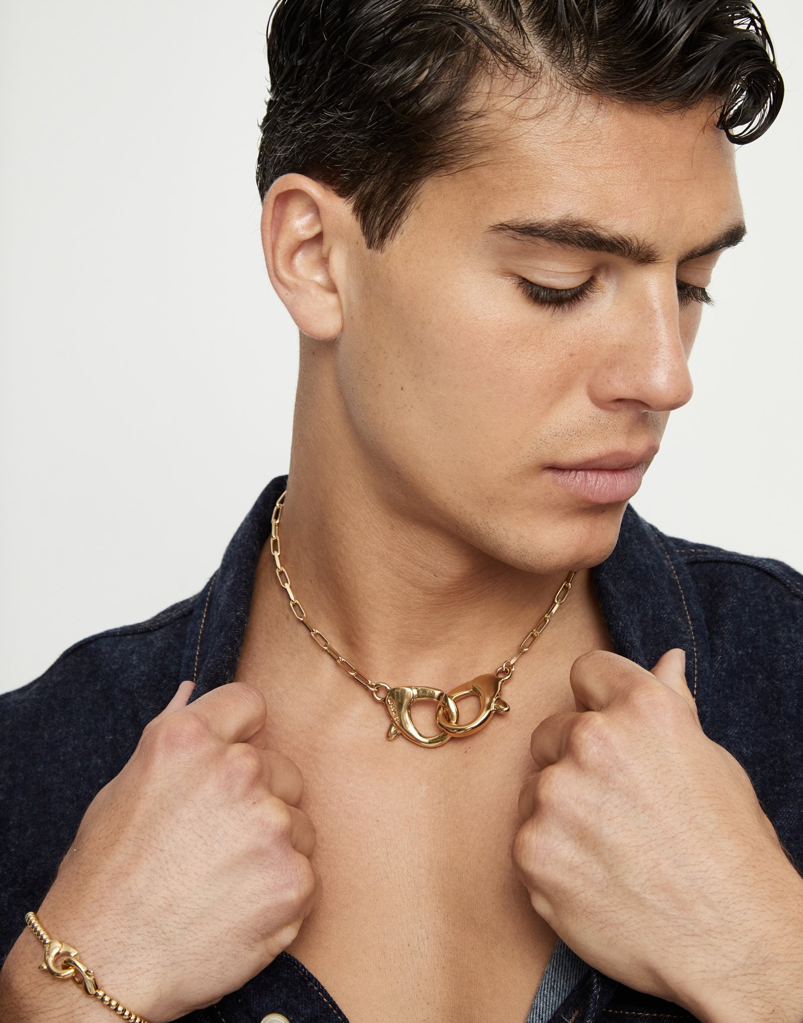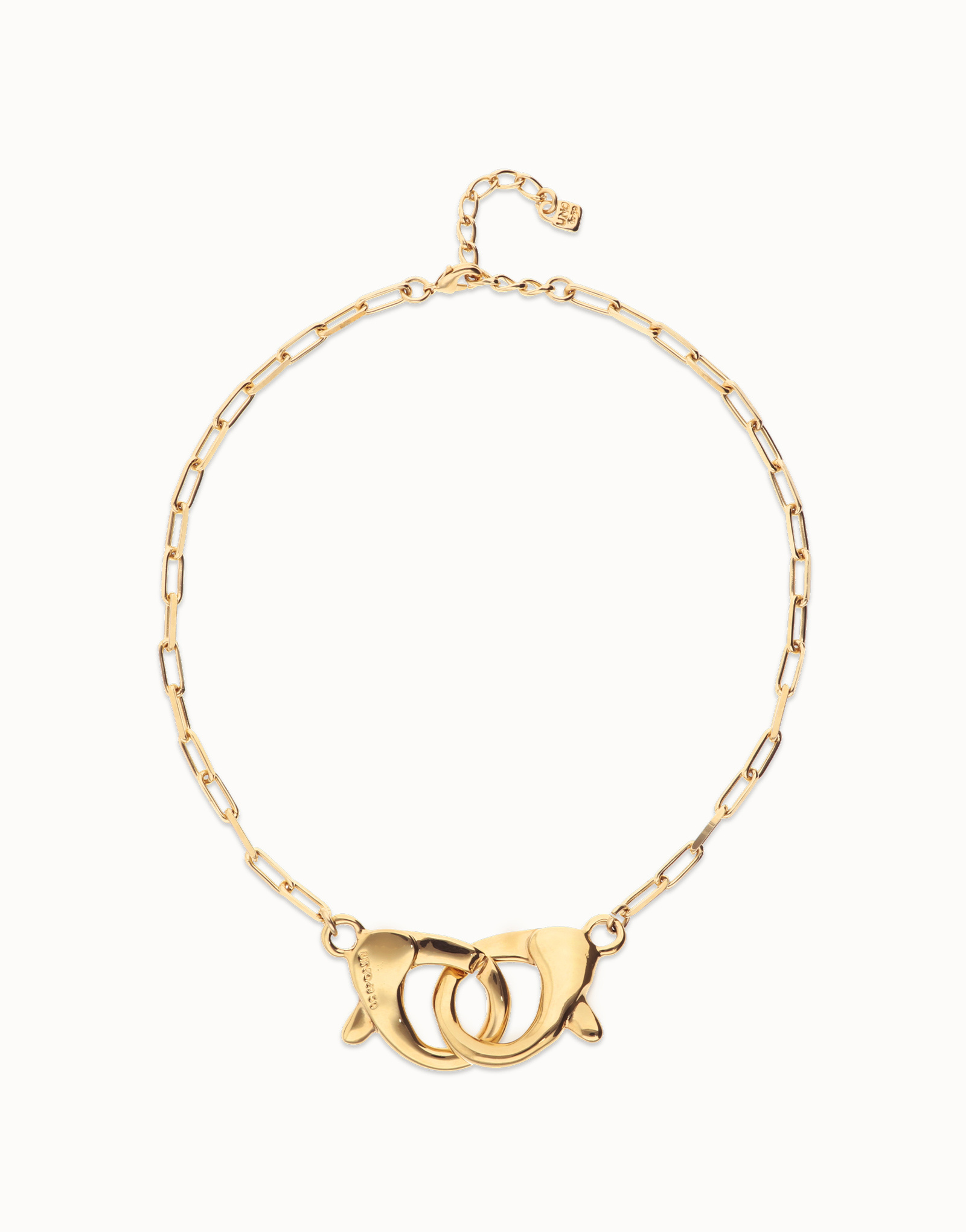Deze opvallende ketting uit de Ser Inseparable collectie van UNOde50 is een krachtig statement van luxe en verbondenheid. Het ontwerp bestaat uit robuuste, moderne schakels en een grote, verweven karabijnhaaksluiting—verguld en met de hand vervaardigd. De karabijnhaak staat symbool voor de kracht van relaties die ons versterken: complementair, onbreekbaar en betekenisvol. Dit sieraad is ontworpen voor wie durft te verbinden—met stijl, met mensen, met zichzelf. Draag hem solo voor een krachtige uitstraling, of combineer met andere lagen voor een persoonlijke, gelaagde look.