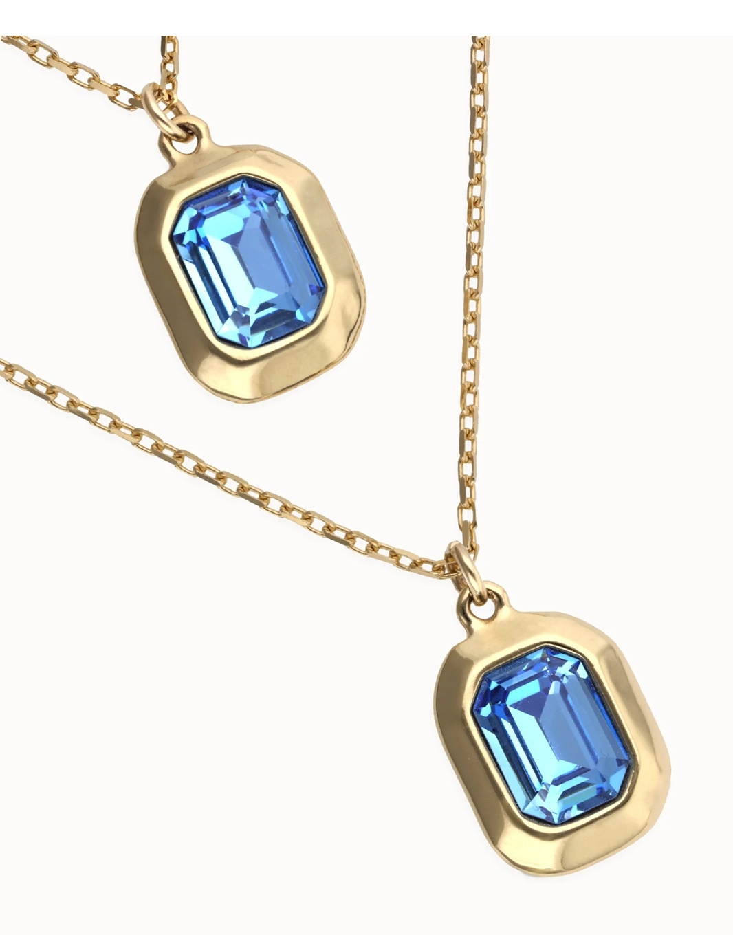 UNOde50 Ketting | Dubbele ketting met twee rechthoekige gefacetteerde kristallen | Verguld | COL2072AZUORO
