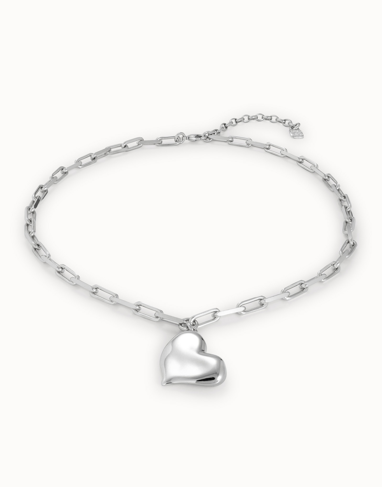 UNOde50 Ketting | HEARTBEAT is een verzilverde ketting van middelgrote schakels met het iconische hart van UNOde50. Dankzij de karabijnsluiting kan hij op de gewenste lengte worden afgesteld | Uit EMOTIONS SS22 collectie | Valentijn | Lengte 40-45 cm.