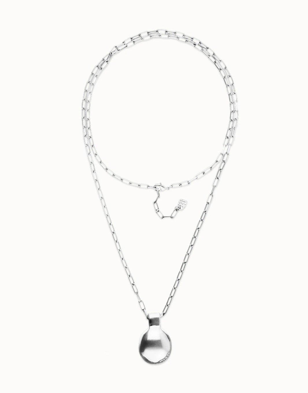 De Gravity‑collectie van UNOde50 draait om terugkeren naar je kern — en deze lange verzilverde ketting vangt dat gevoel in een krachtig, minimalistisch ontwerp. De ketting bestaat uit één lange, slanke schakel die je dubbel draagt, waardoor er twee elegante lussen ontstaan die speels met elkaar in gesprek lijken te gaan.