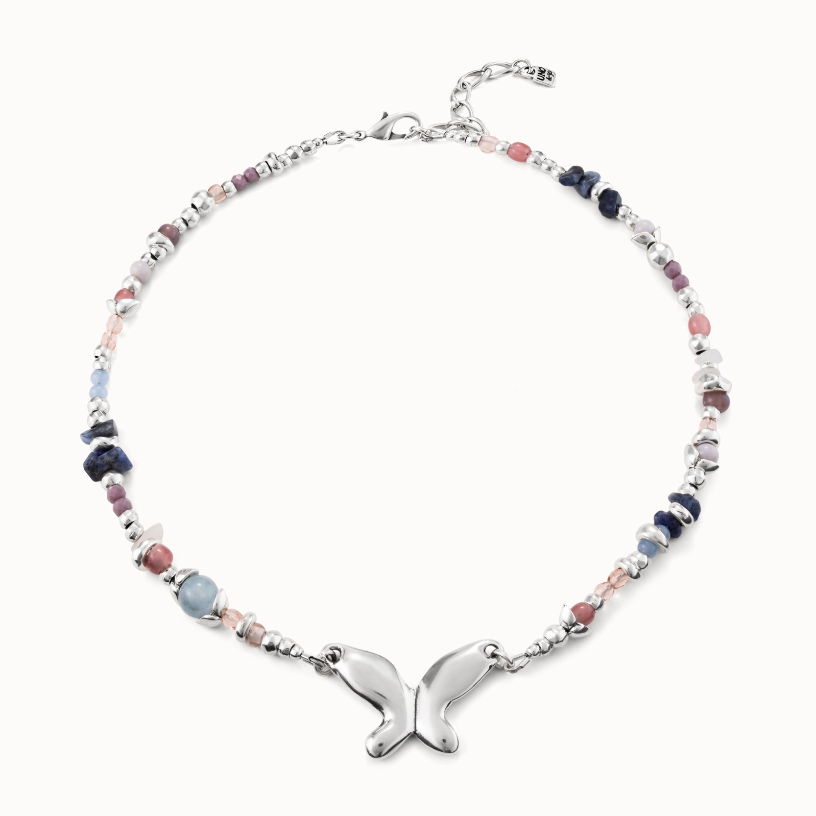 UNOde50 Ketting | METAMORPHOSIS is een korte verzilverde ketting MET VEELKLEURIGE KRALEN EN KRISTALLEN EN VLINDER. Geïnspireerd door natuurelementen die altijd aanwezig zijn in de geschiedenis van UNOde50, bevat de Free-collectie sieraden zoals deze korte ketting die een verzilverde kralenset combineert met veelkleurige handgemaakte kristallen en een centrale vlinder. De ketting heeft een verstelbare karabijnsluiting. Dit juweel is Made in Spain, 100% handgemaakt en heeft een unieke designafwerking.