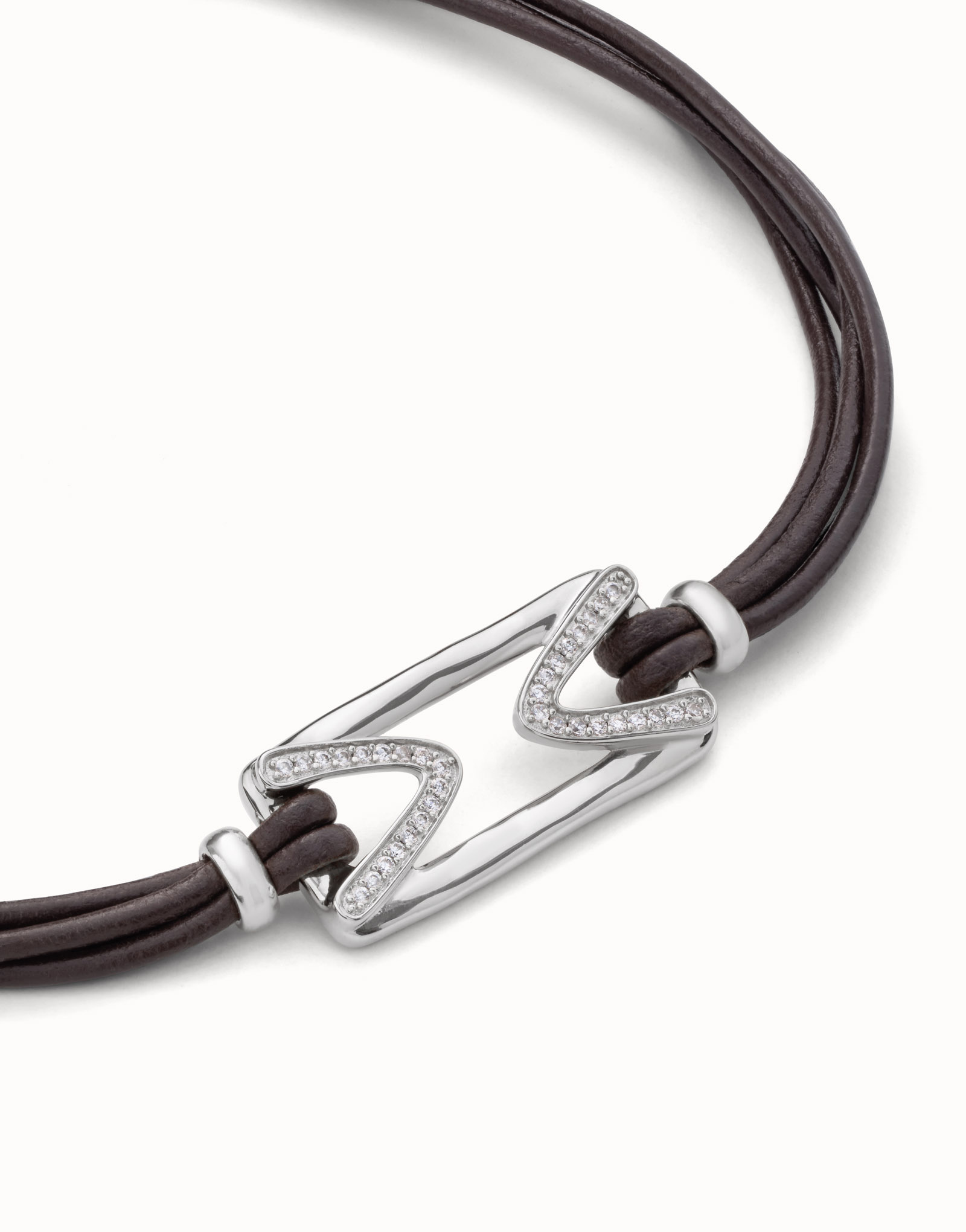 KORTE VERZILVERDE EN LEDEREN KETTING MET SCHAKEL EN TOPAZ || Stukjes organische geometrie voegen moed toe en geven leven aan de Brave-collectie met deze korte leren ketting met een centrale rechthoekige schakel en topaas. De ketting heeft een verstelbare karabijnsluiting. Creativiteit, vrijgevigheid en overvloed.| |Dit juweel is gemaakt in Spanje, 100% handgemaakt, waardoor een unieke designafwerking wordt bereikt.t.