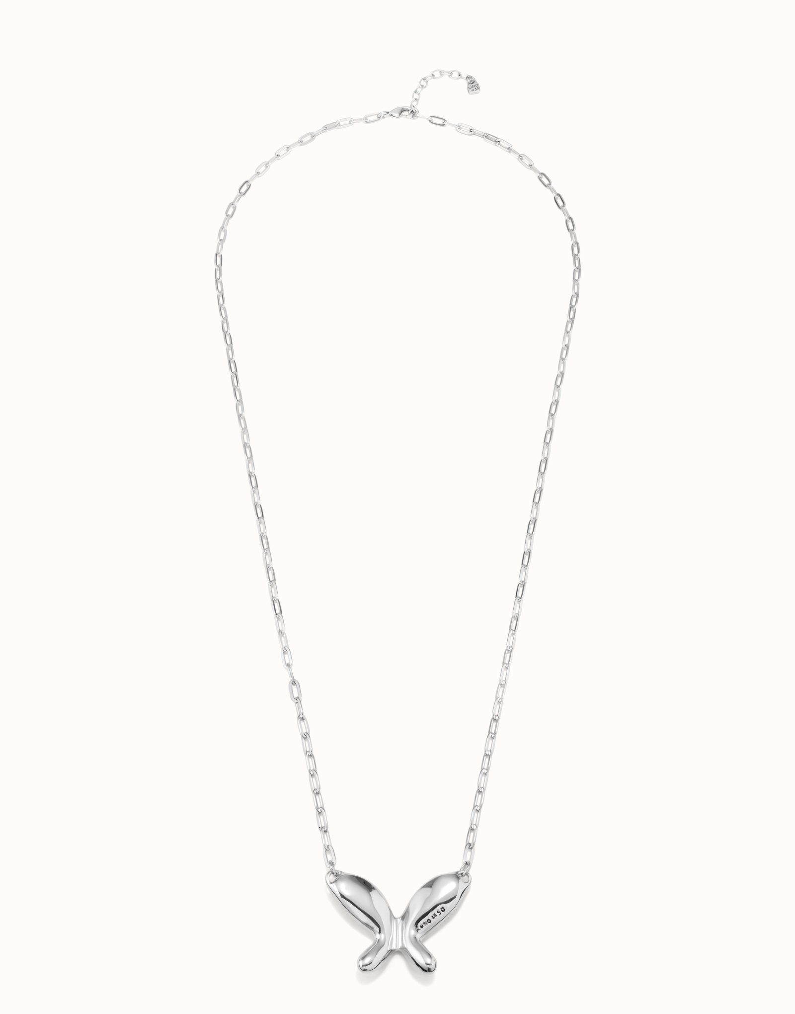 UNOde50 Ketting | WINGS is een lange verzilverde schakel ketting MET CENTRALE VLINDER. Geïnspireerd door elementen van de natuur die altijd aanwezig zijn in de geschiedenis van UNOde50, omvat de Free-collectie sieraden zoals deze dunne ketting met een centrale vlinder met een karabijnhaak die helpt bij het aanpassen aan de perfecte maat. Dit juweel is Made in Spain, 100% handgemaakt en heeft een unieke designafwerking.