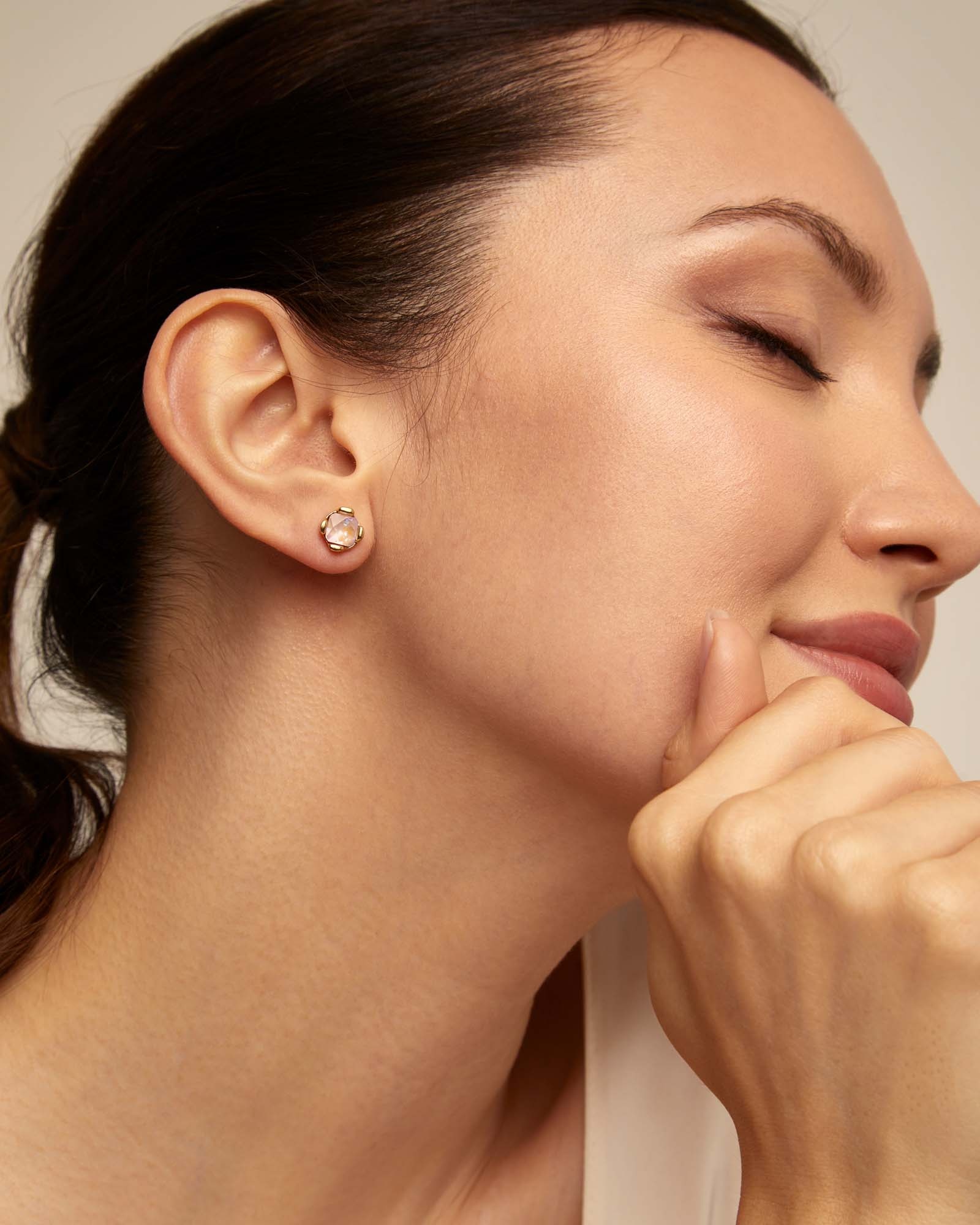 Dit komt tot uiting in deze oorknopjes met een elegante roze facetgeslepen kristal. Moersluiting met gegraveerd UNOde50-logo. Een echte samensmelting van kunst en juweel in één stuk dat je doet dromen. || Dit juweel is gemaakt in Spanje, 100% handgemaakt en heeft een unieke designafwerking.