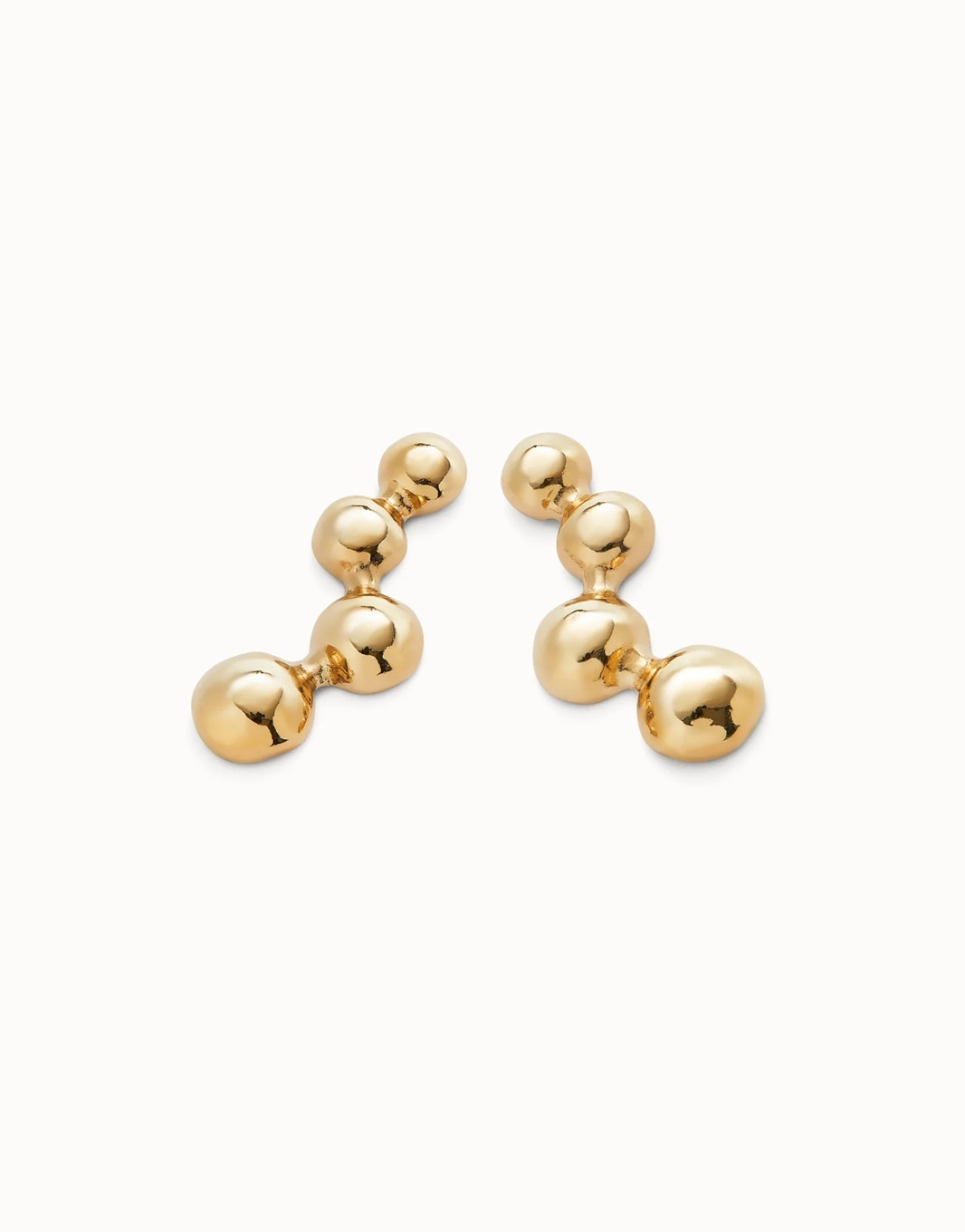 UNOde50 Oorbellen | SER INTREPIDA zijn lange vergulde oorbellen met vier bolvormige kralen.