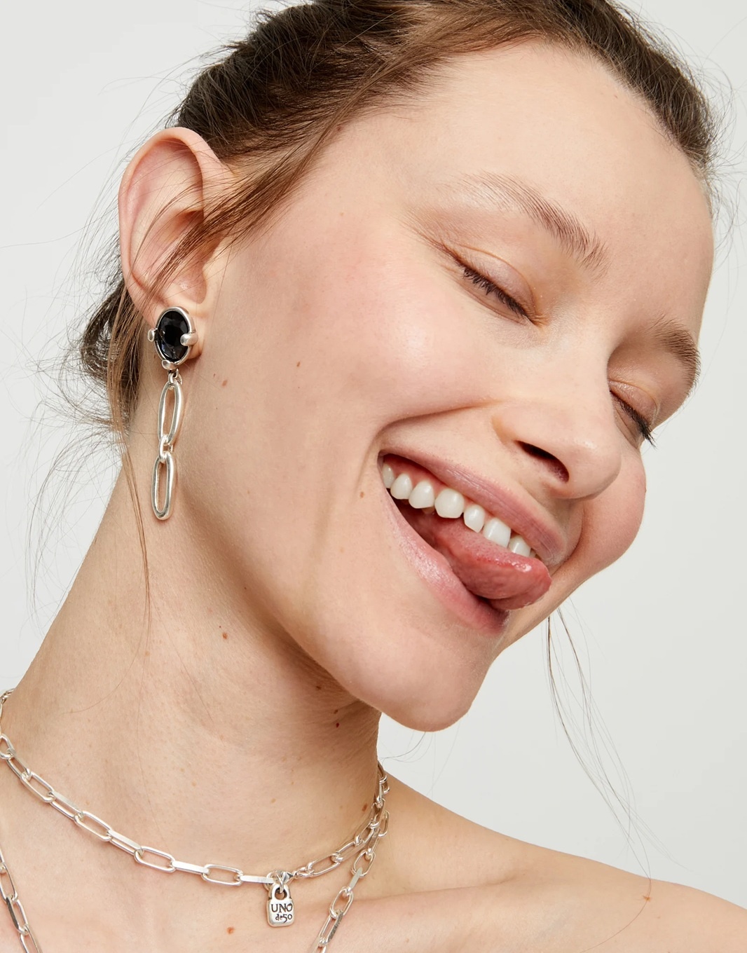 Ontdek de verfijnde allure van oorbellen PEN1003NGRMTL uit de Ser Deslumbrante-collectie van UNOde50. Deze oorbellen combineren een verzilverde afwerking met diepzwarte, ovaal gefacetteerde kristallen die het licht subtiel weerkaatsen en een mysterieuze glans verspreiden. Het ontwerp straalt kracht en elegantie uit, waarbij de robuuste vorm van het metaal prachtig contrasteert met de delicate schittering van de kristallen.