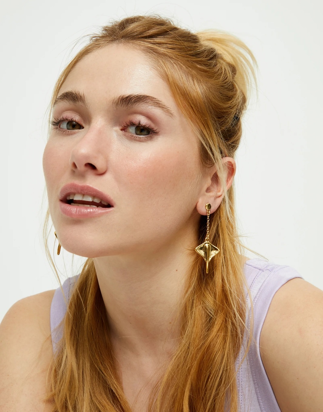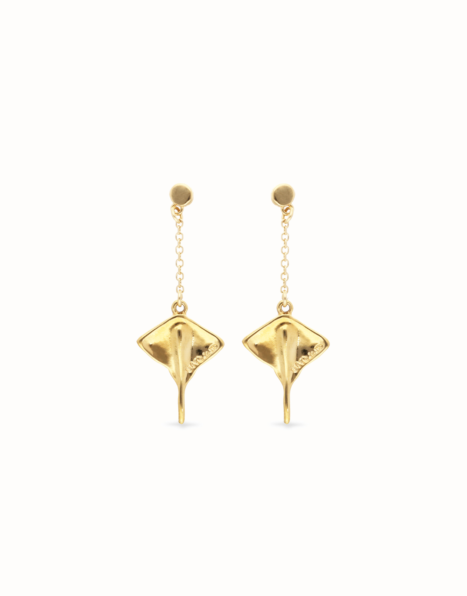 UNOde50 Oorbellen | SER MAJESTUOSA zijn vergulde lange oorbellen in de vorm van een pijlstaartrog. Ontdek de sieraden uit de Ser Majestuosa-collectie, een eerbetoon aan het eiland Puerto Rico en zijn inwoners, met de elegantie van de mantarog die door de zee fladdert.