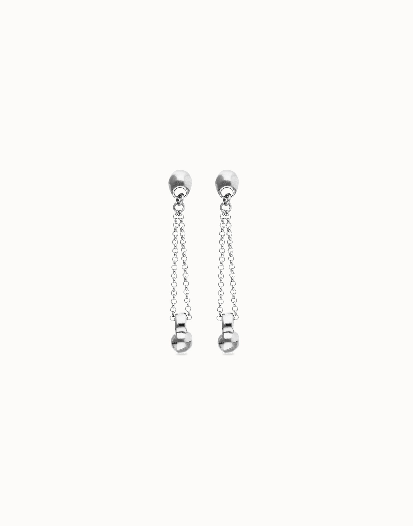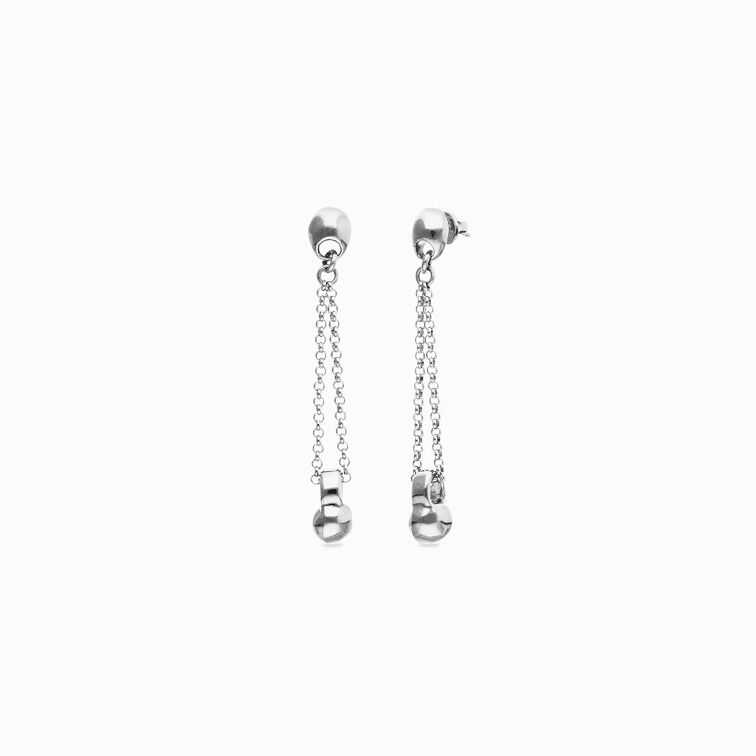 De verzilverde UNOde50 oorbellen PEN1063MTL zijn een perfecte balans tussen elegantie en stoer design. Het lange, slanke silhouet met fijne ketting en karakteristieke bol zorgt voor een subtiele beweging bij elke stap. Handgemaakt in Spanje en afgewerkt met een hoogwaardige zilverlaag van 15 micron dikte, stralen deze oorbellen pure ambacht en persoonlijkheid uit.