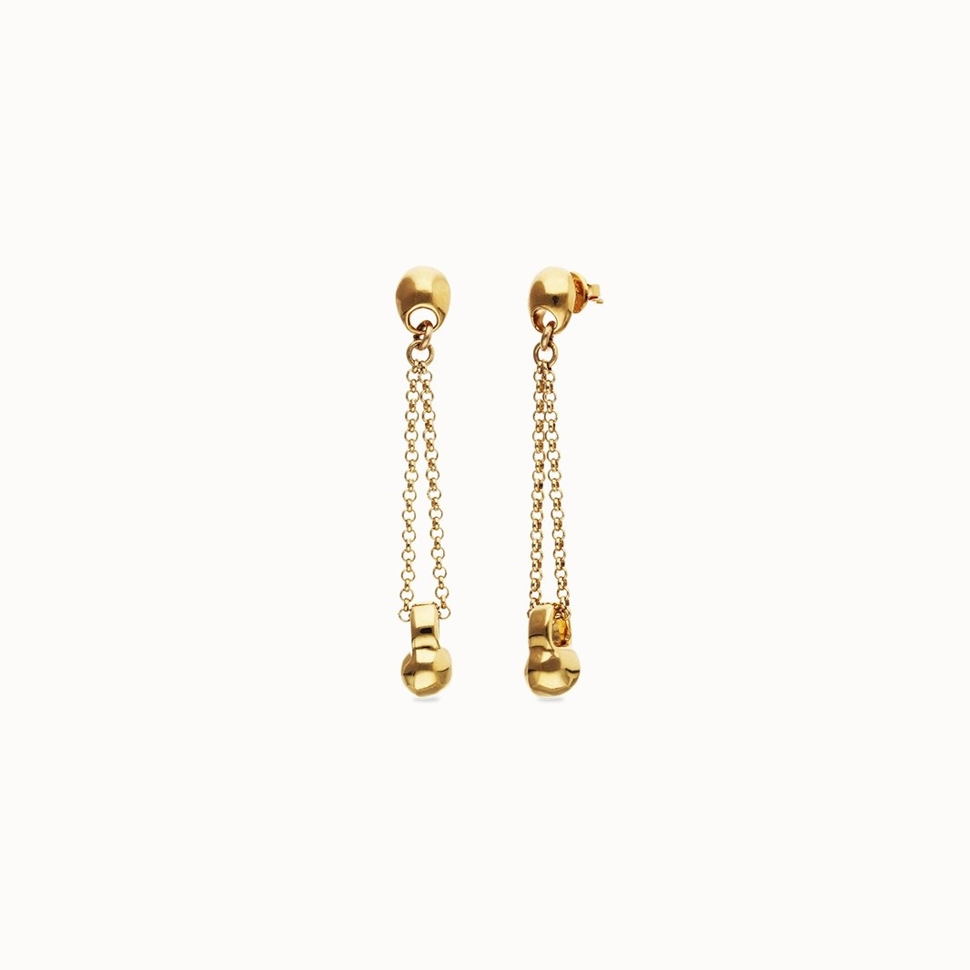 De vergulde UNOde50 oorbellen PEN1063ORO zijn een perfecte balans tussen elegantie en stoer design. Het lange, slanke silhouet met fijne ketting en karakteristieke bol zorgt voor een subtiele beweging bij elke stap. Handgemaakt in Spanje en afgewerkt met een hoogwaardige goudlaag van 15 micron dikte, stralen deze oorbellen pure ambacht en persoonlijkheid uit.