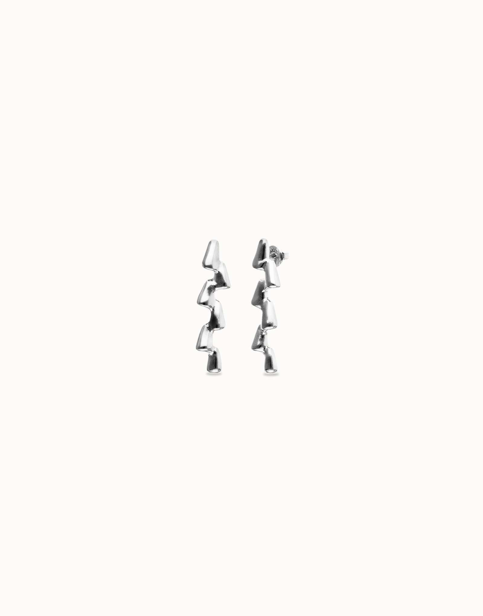 De verzilverde UNOde50 PEN1074MTL oorbellen zijn een echte eyecatcher binnen de ROOTS‑collectie. Het langgerekte zigzag‑design bestaat uit organische, vloeiende vormen die beweging en energie uitstralen. De asymmetrische lijnen geven deze oorbellen een moderne, artistieke uitstraling — precies de handgemaakte signatuur waar UNOde50 zo geliefd om is.