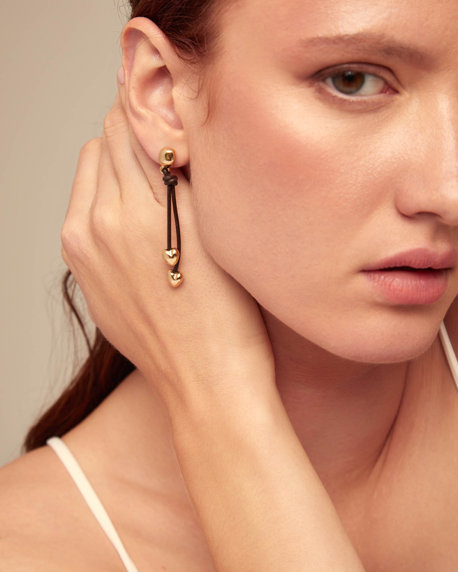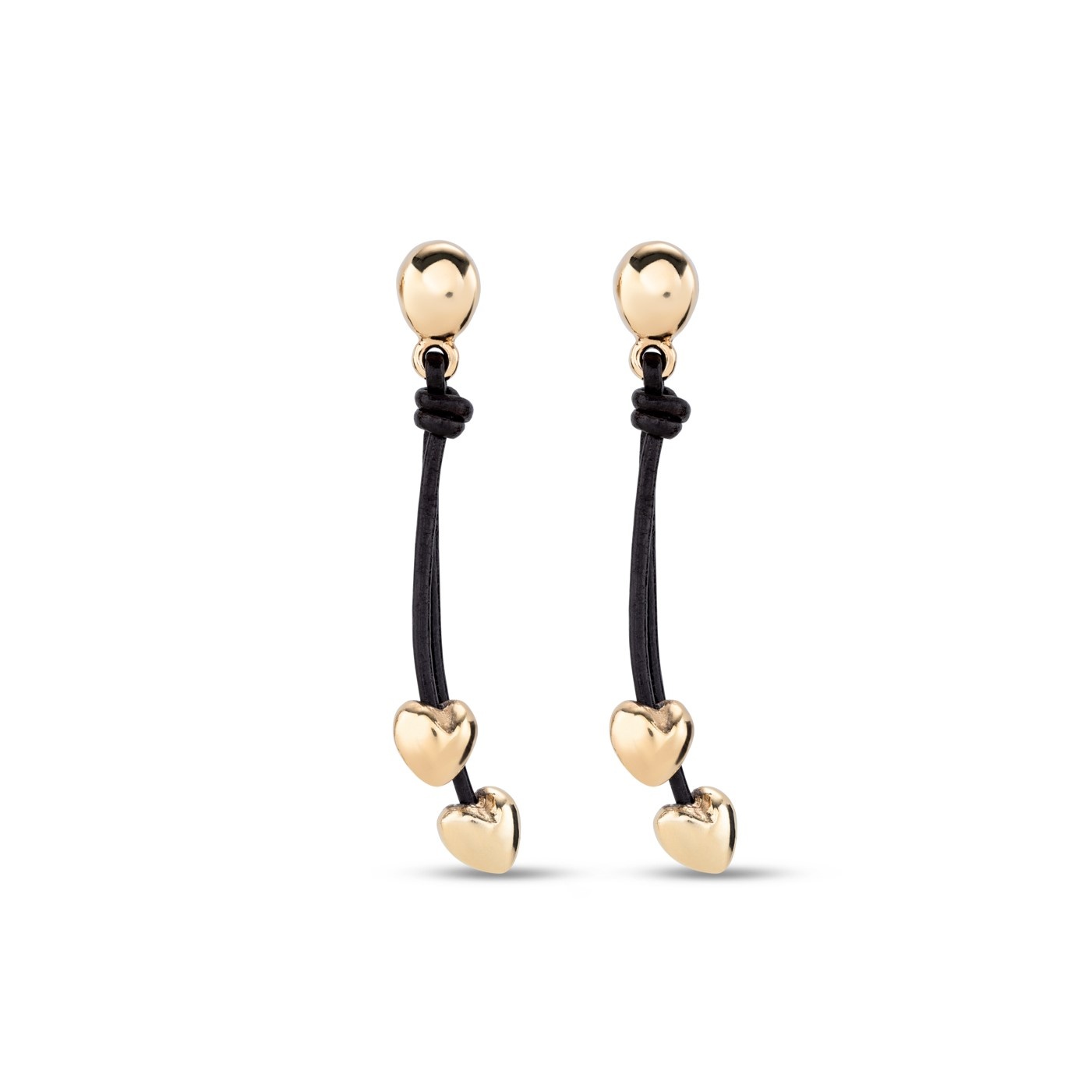 UNOde50 Oorbellen | PRETTY LOVE zijn leuke oorbellen met leren kettinghanger en twee kleine vergulde hartjes. Ze zijn 5 cm lang en passen perfect bij de andere sieraden uit de BELOVED collectie van UNOde50. Dit zijn de ideale oorbellen om je geliefde te verrassen op Valentijnsdag.