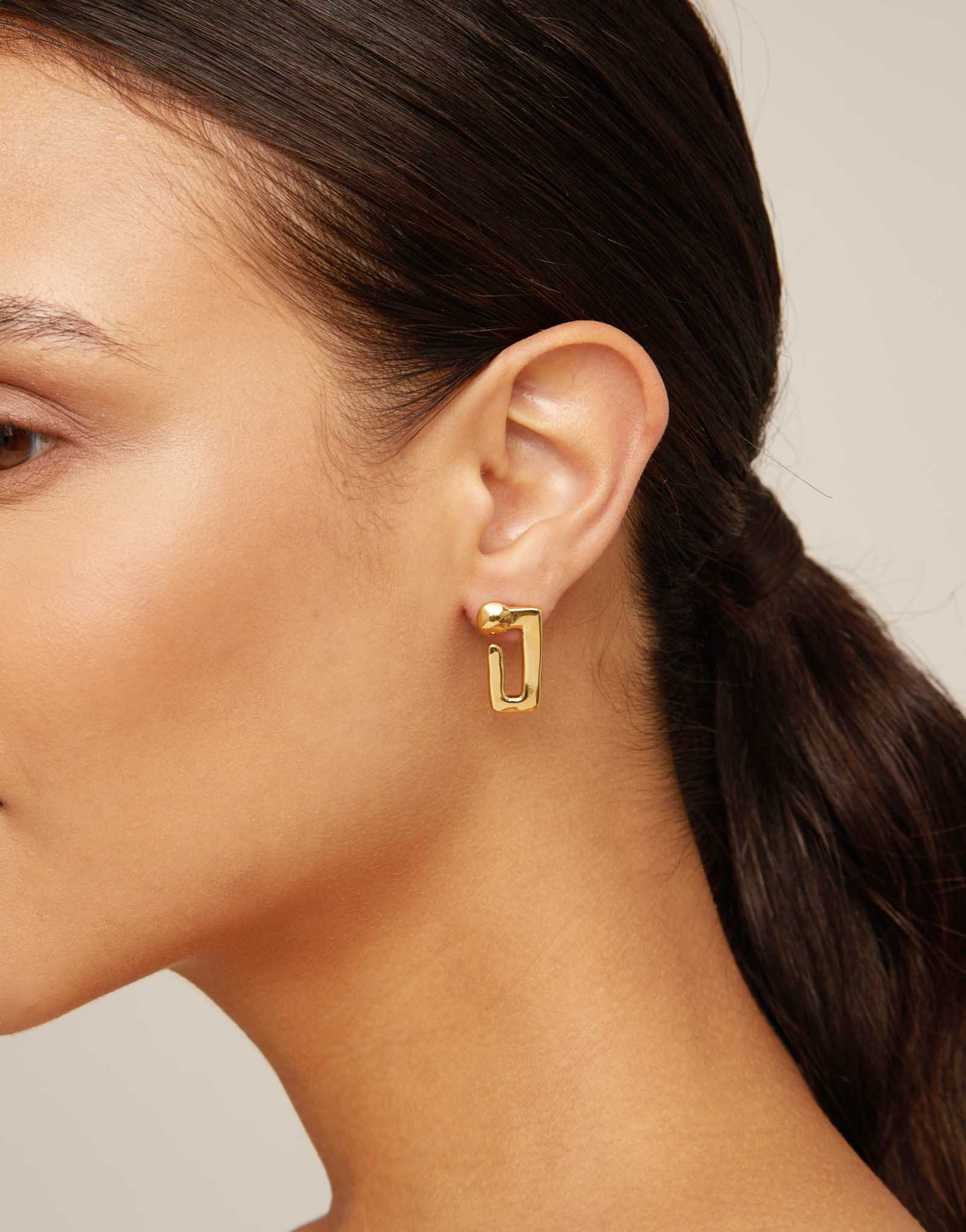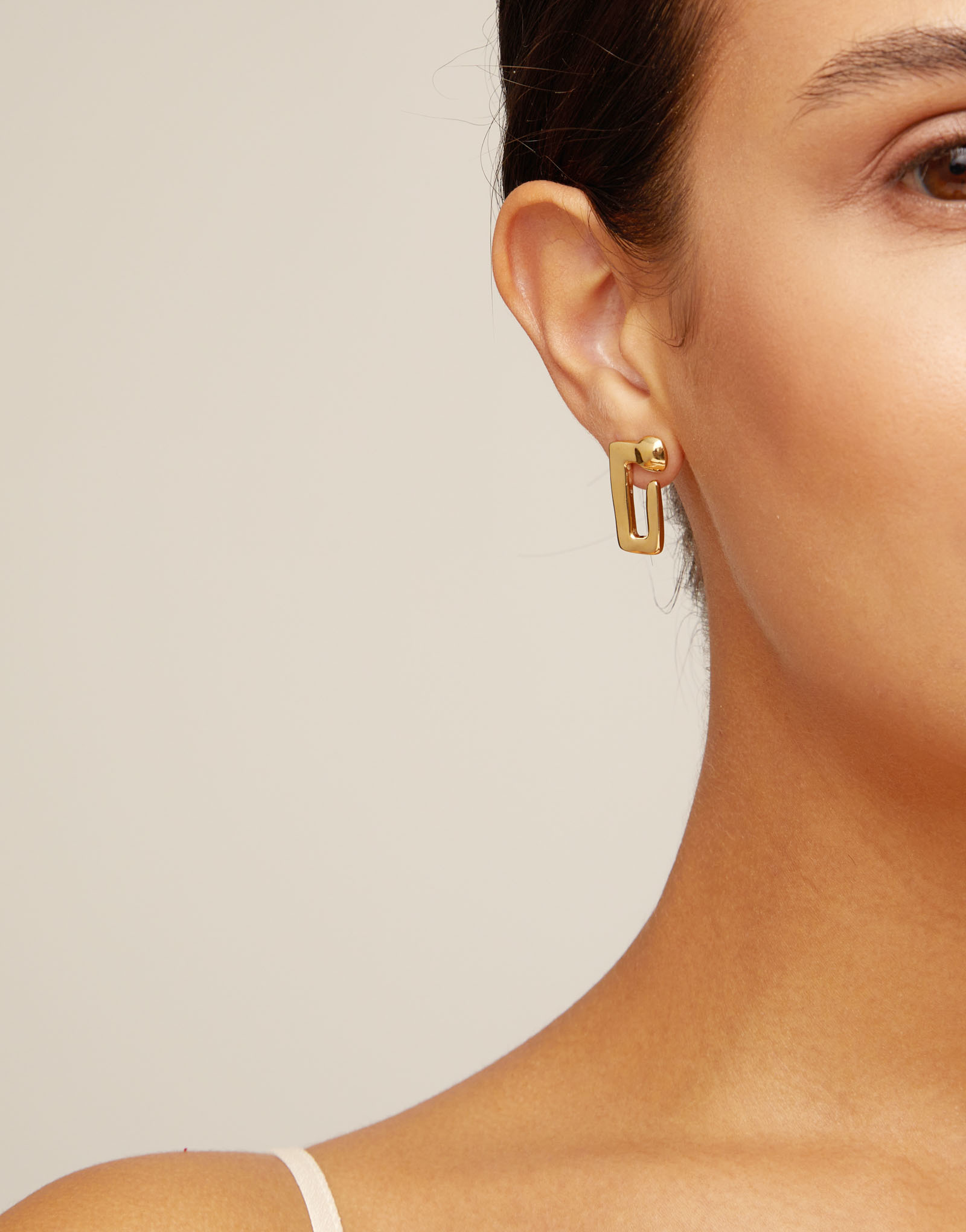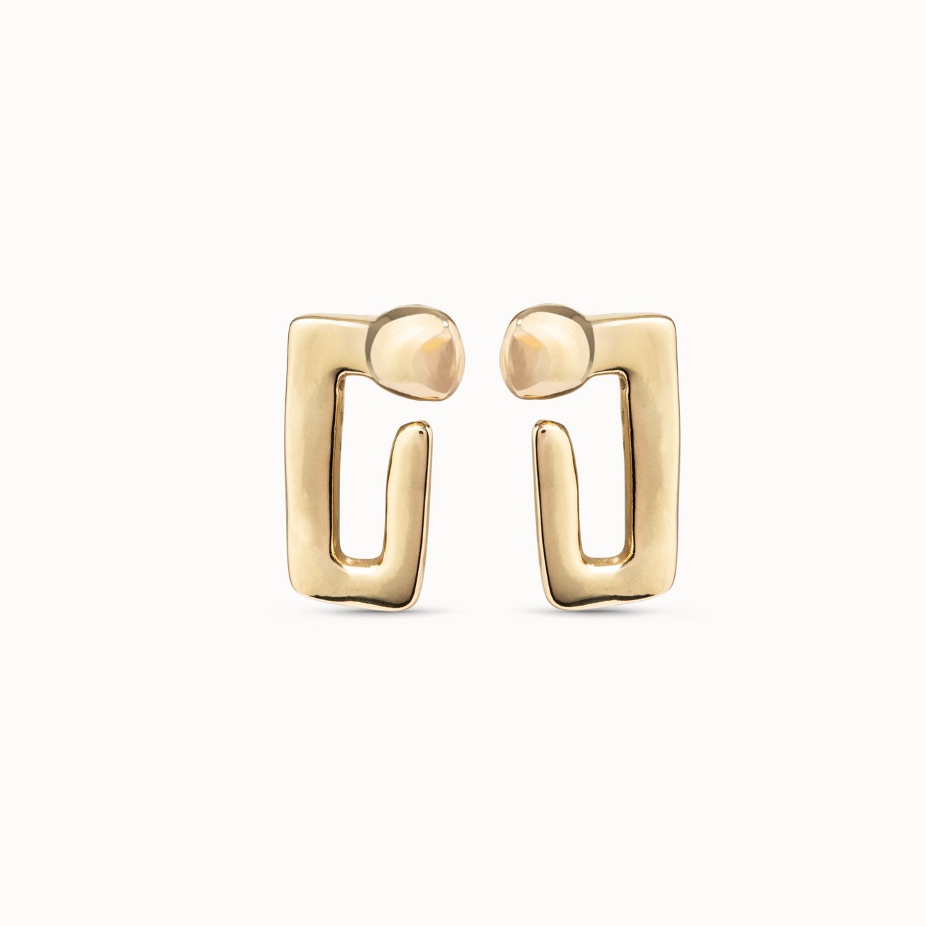UNOde50 Oorbellen | UNUSUAL zijn middelgrote rechthoekige vergulde oorknopjes, geïnspireerd op de iconische gedraaide spijker. Een uniek en tijdloos juweel, ontworpen en handgemaakt in Spanje.