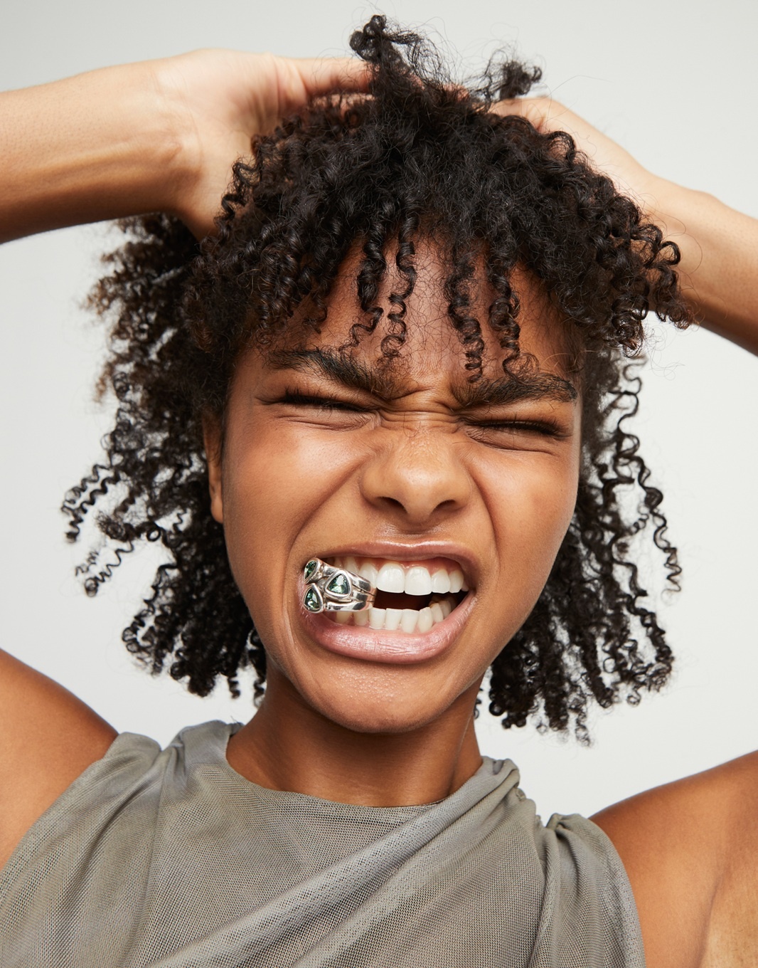 Moderne glamour: Draag statement sieraden met unieke volumes en opvallende glans om een gedurfde en eigentijdse look te creëren.