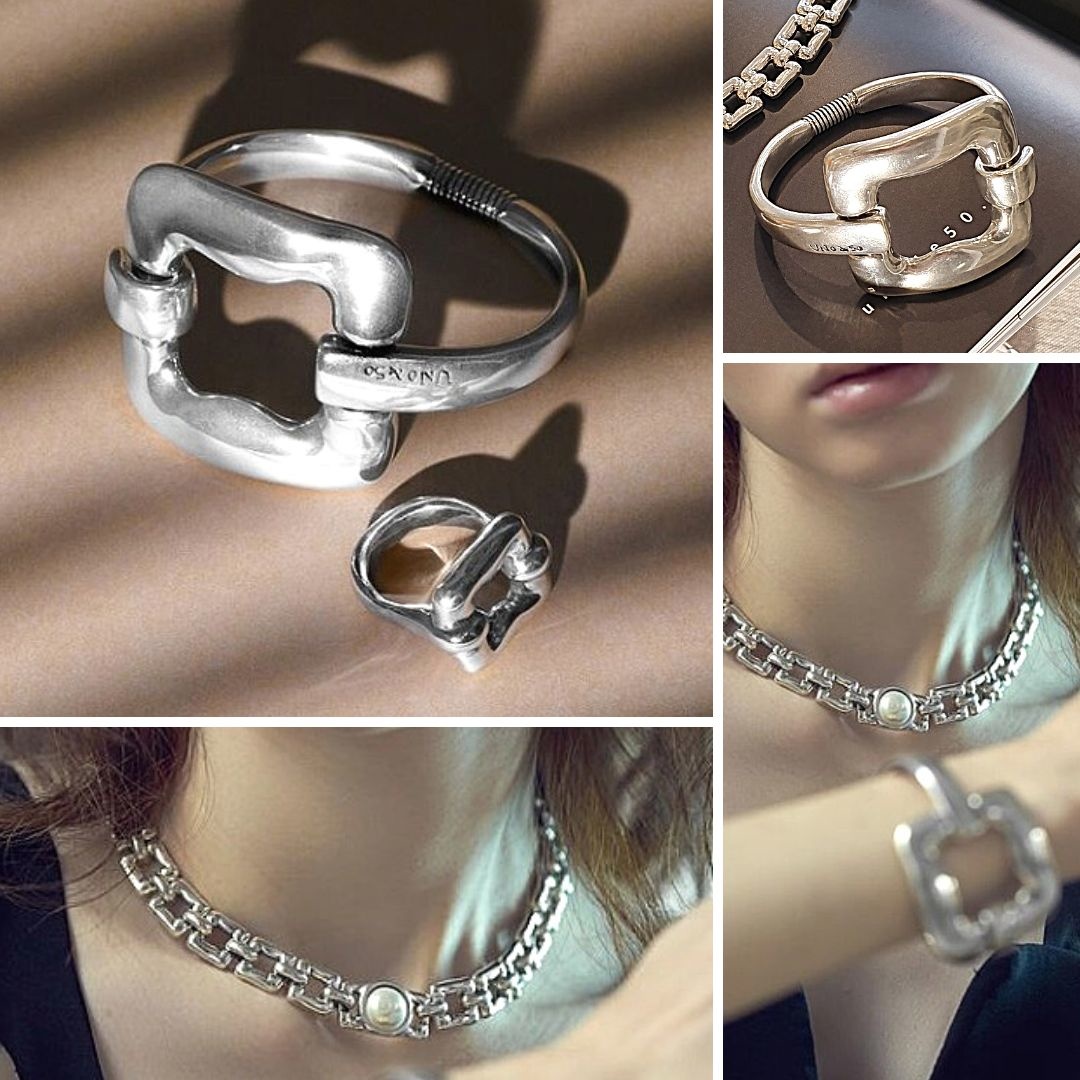 UNOde50 Ring FEMME FATALE is een verzilverde ring met een uniek vierkant schakelontwerp. Uit MAGNETIC FW22 Collectie.
