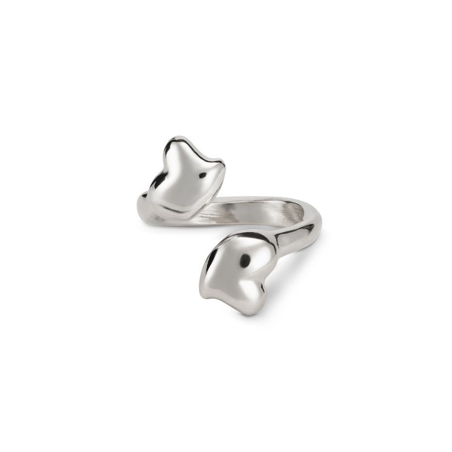 UNOde50 Ring MUTUALOVE is een verzilverde open ring met een twee hartjes. Uit EMOTIONS Collectie SS22 voor Valentijn.