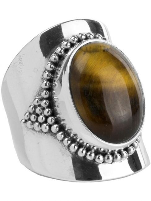 YMALA Ring | 925 Zilver | TIJGEROOG edelsteen is een handmade 925 zilveren ring met een bruine TIJGEROOG edelsteen.